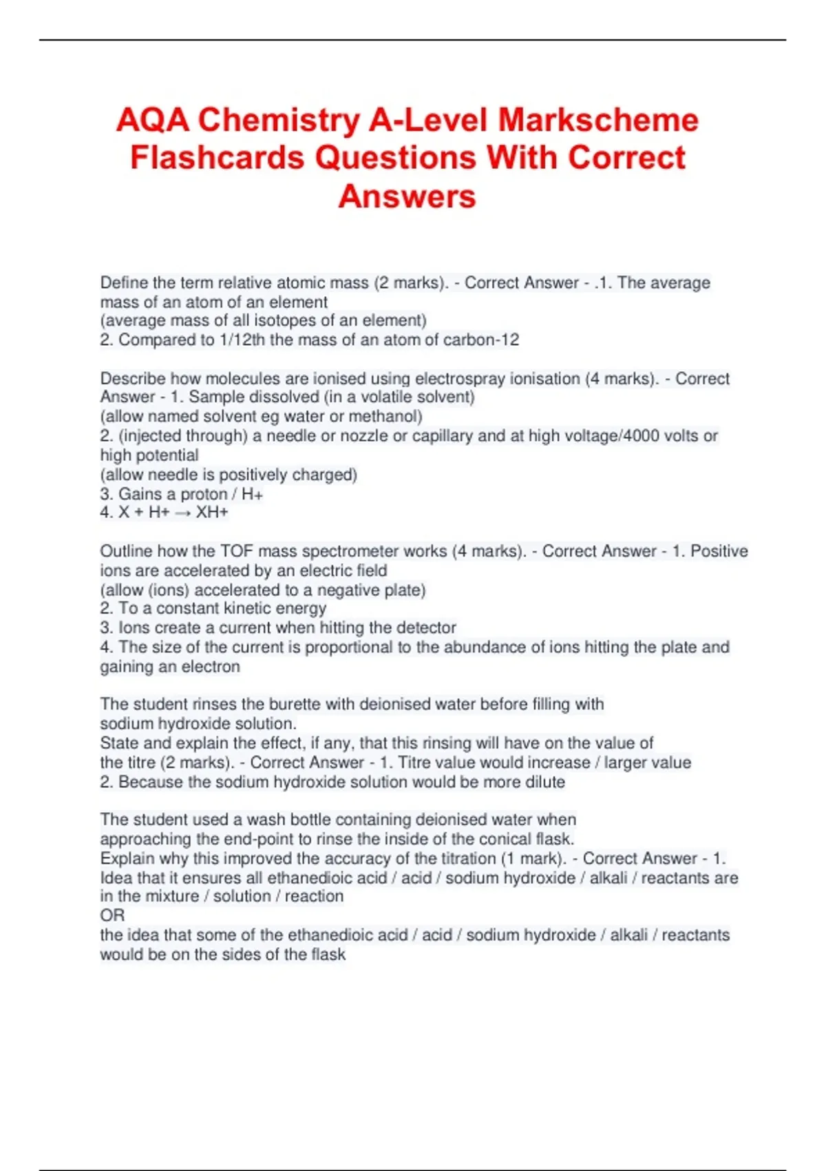 AQA Chemistry A-Level Markscheme Flashcards Questions With Correct Answers