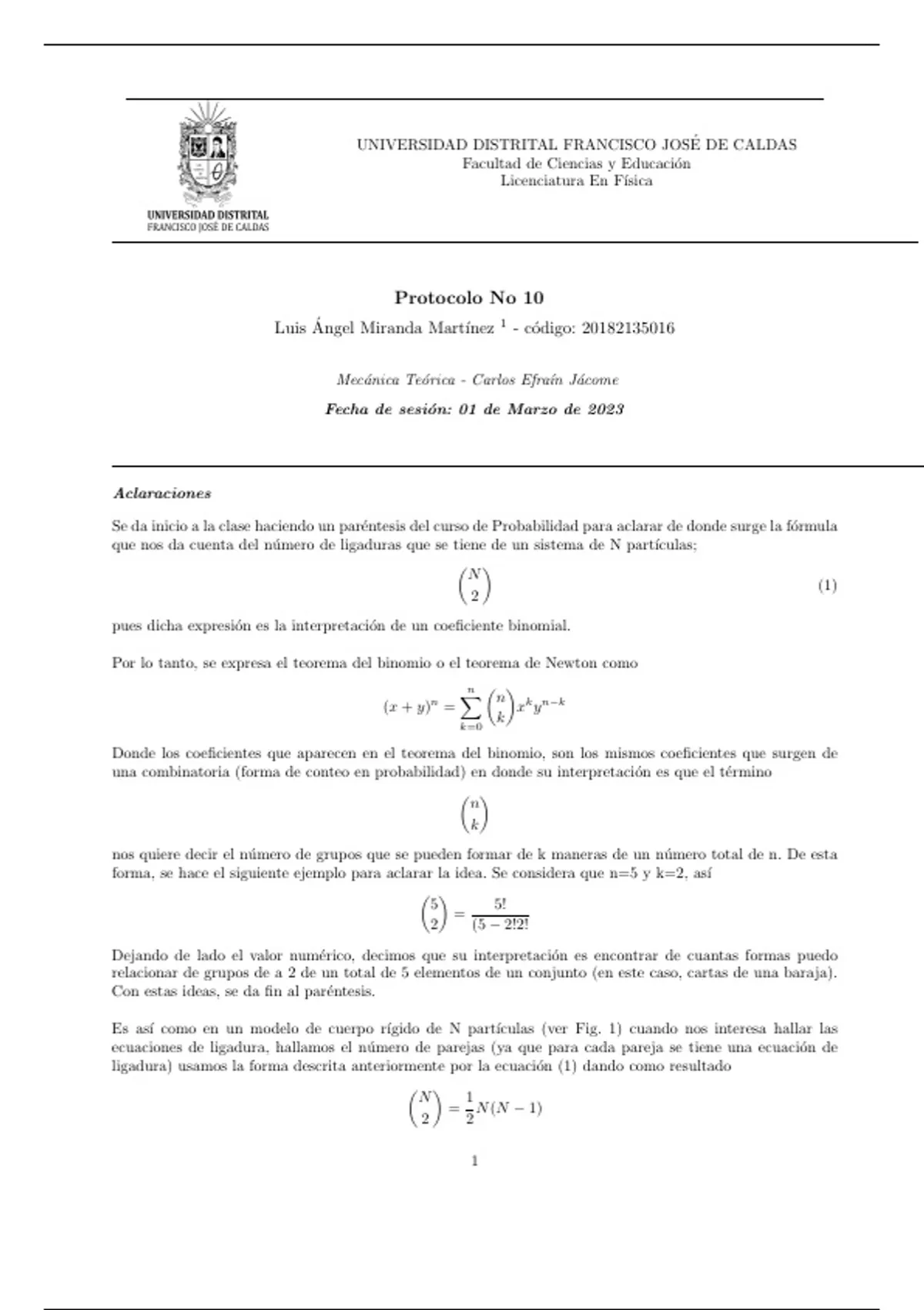 Descripción detallada de clases de mecánica teórica, contiene demostraciones, explicación, ejemplos y ejercicios resueltos.