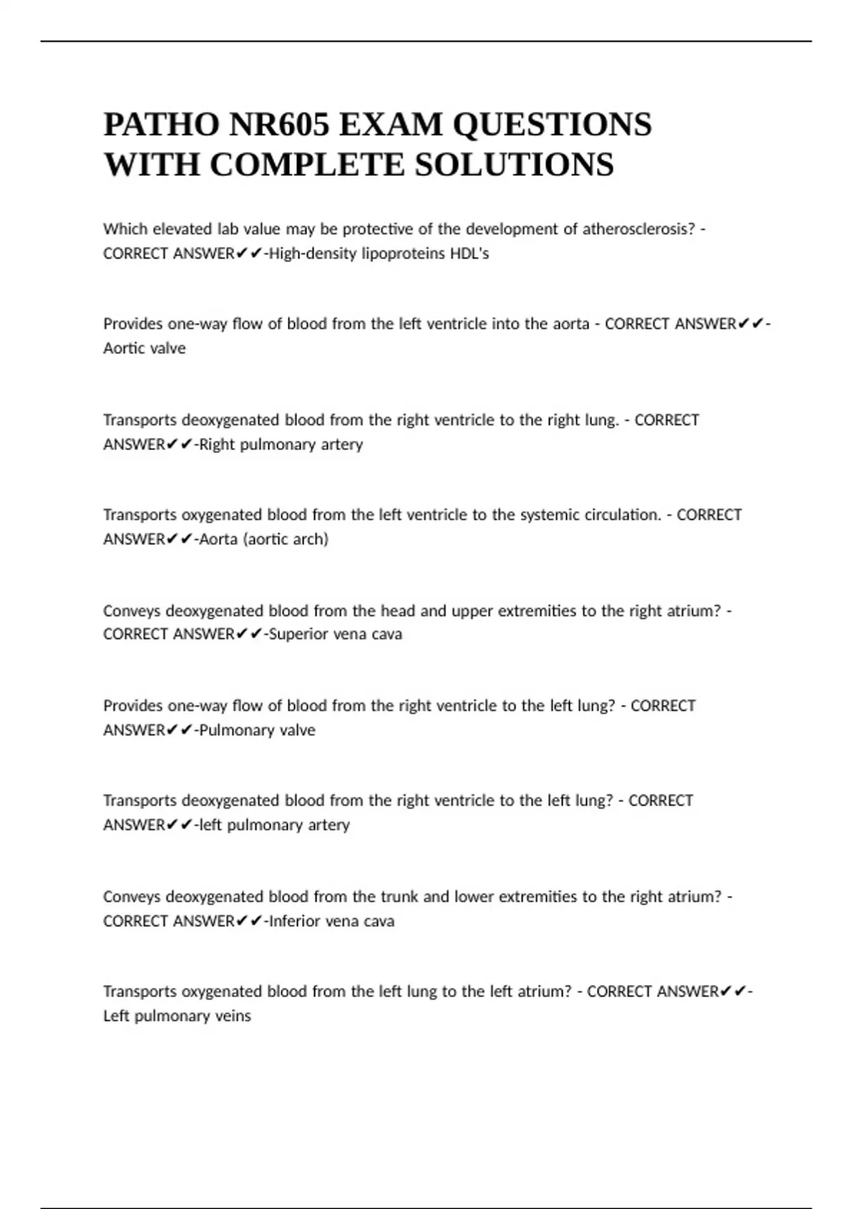 PATHO NR605 EXAM QUESTIONS WITH COMPLETE SOLUTIONS