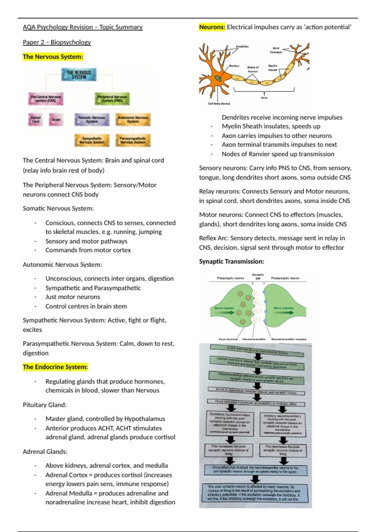 Topic summaries for AQA A-level psychology paper 2 topics - Approaches (excluding cognitive), Biopsychology and Research Methods. Information from AQA Psychology A-level textbook and Up Learn. Any images drawn from google searches and lesson resources where necessary. To be used as refreshers for prior knowledge.