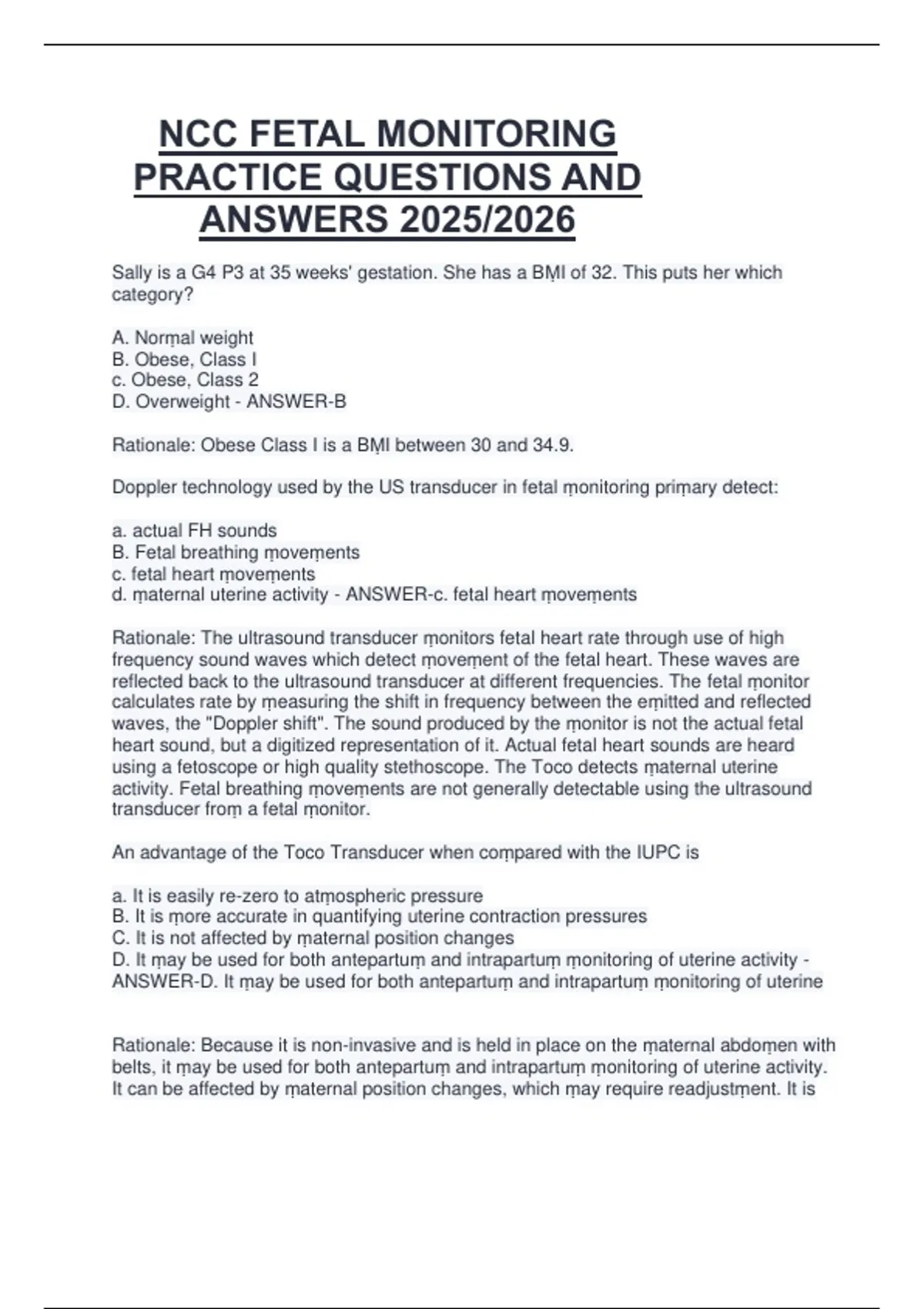 Package deal NCC ELECTRONIC FETAL MONITORING NCC ELECTRONIC FETAL MONITORING CERTIFICATION COMPLETE EXAM QUESTIONS AND VERIFIED ANSWERS 2025/2026