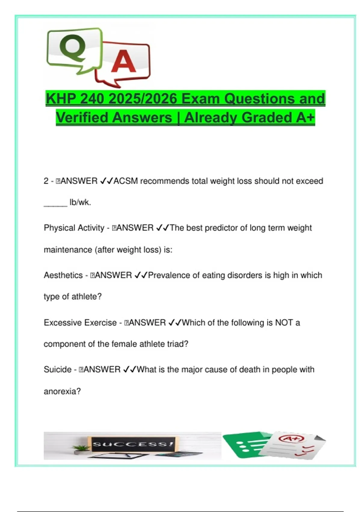 KHP 240 EXAM COMPLETE PACKAGE DEAL