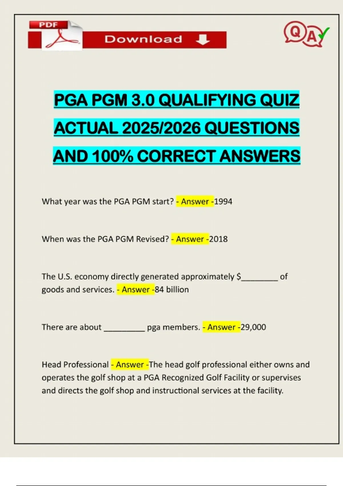 EXAMS PACK::: PGA PGM 3.0 LEVEL 1,2 ACTUAL 2025/2026 Q&A 100% PASS