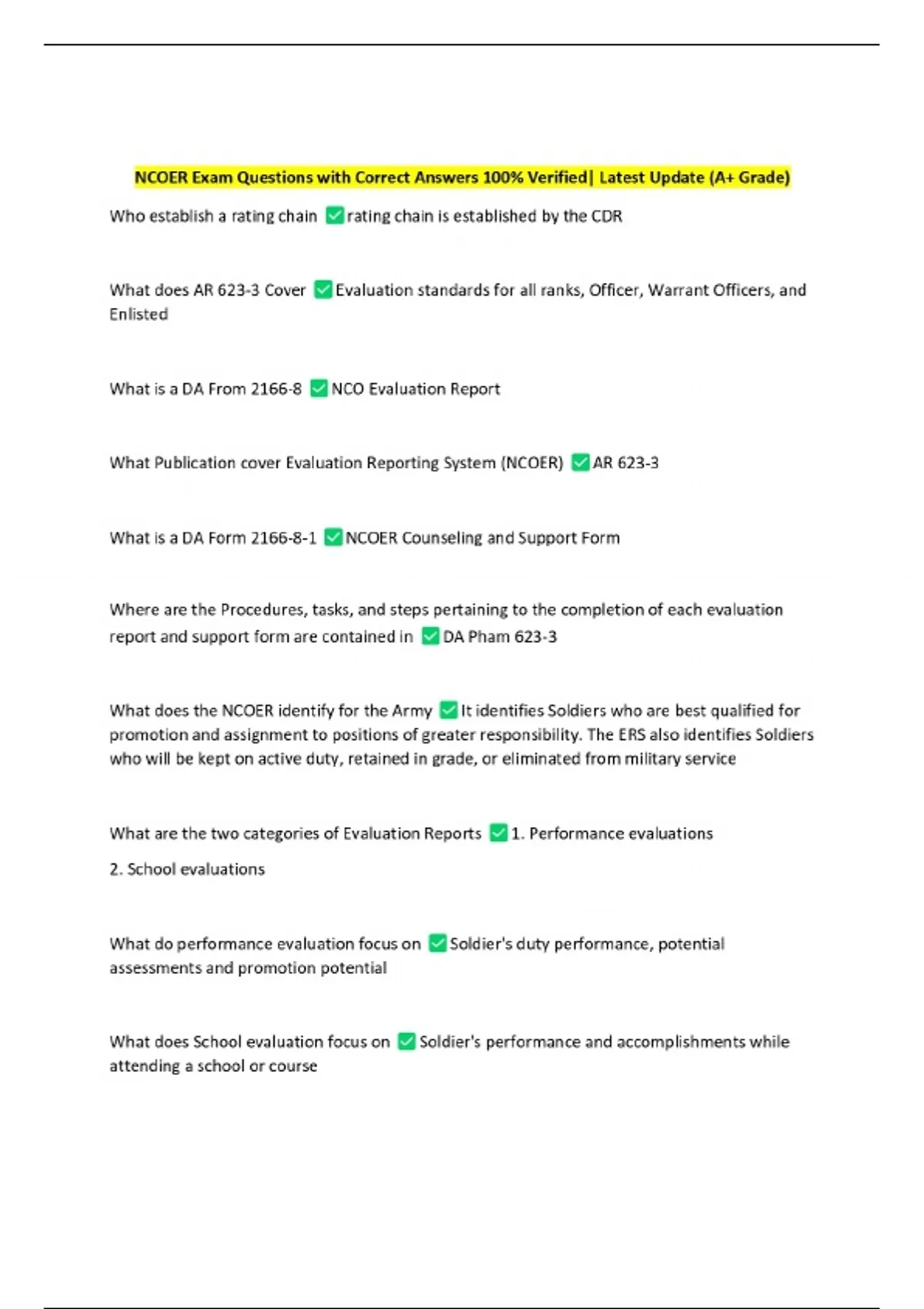 PACKAGE-::NCOER EXAMS WITH CORRECT ANSWERS