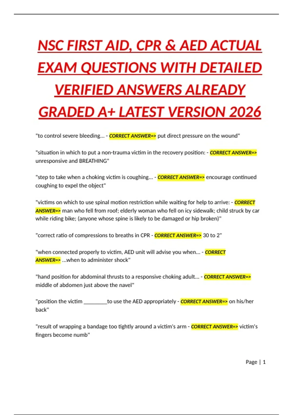 NSC FIRST AID, CPR & AED CERTIFICATION EXAM PACKAGE DEAL