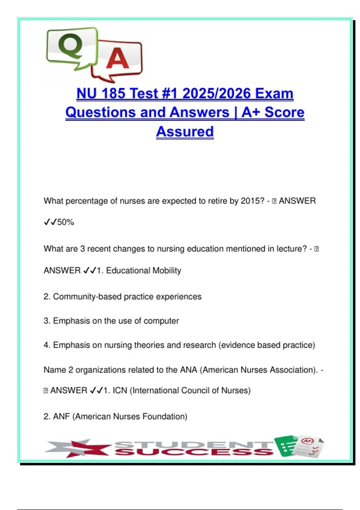 NUR 185 EXAM COMPLETE PACKAGE DEAL
