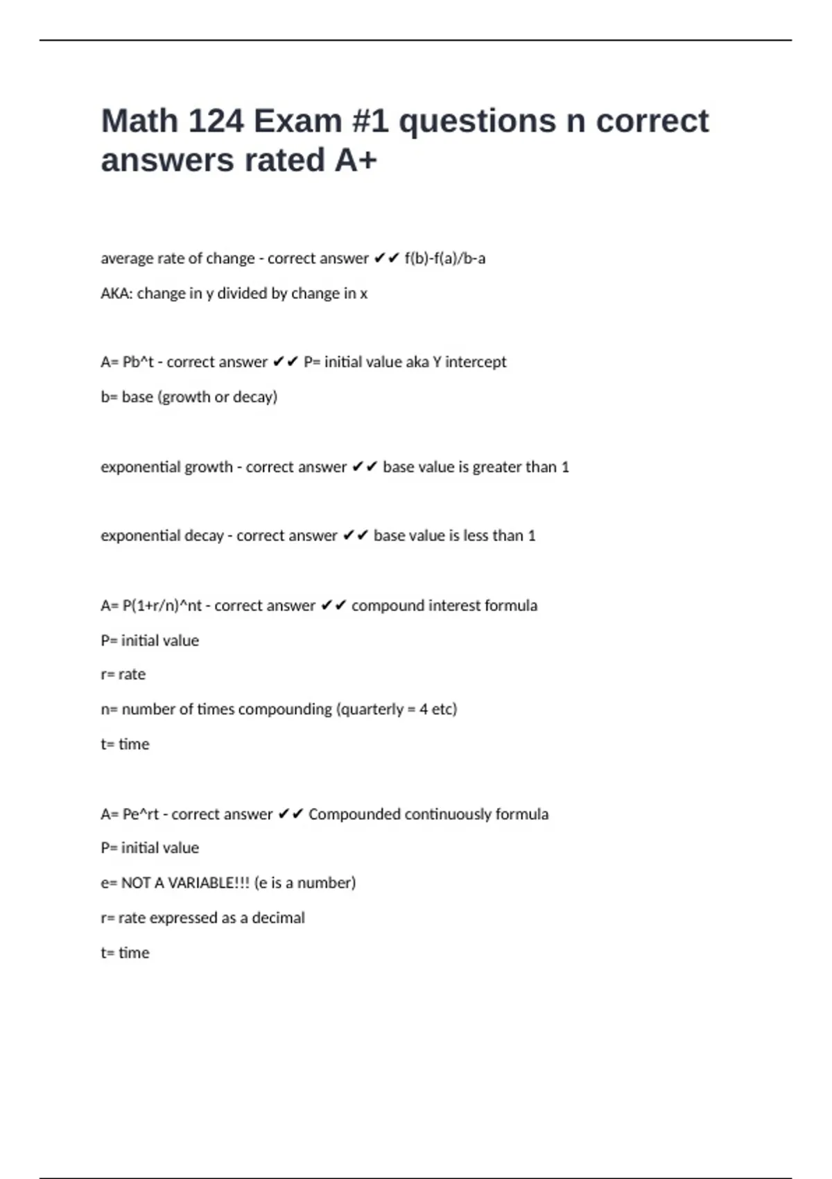 9 Exam (elaborations) Math 124 Test 1 questions & answers graded A+ passed 10 Exam (elaborations) Math 124 Quiz 3 Final review questions and answers rated A+ 11 Exam (elaborations) Math 124 midterm questions n answers 12 Exam (elaborations) Math 124 midterm 2 questions and answers rated A+ 13 Exam (elaborations) Math 124 Midterm 1 Review (updat