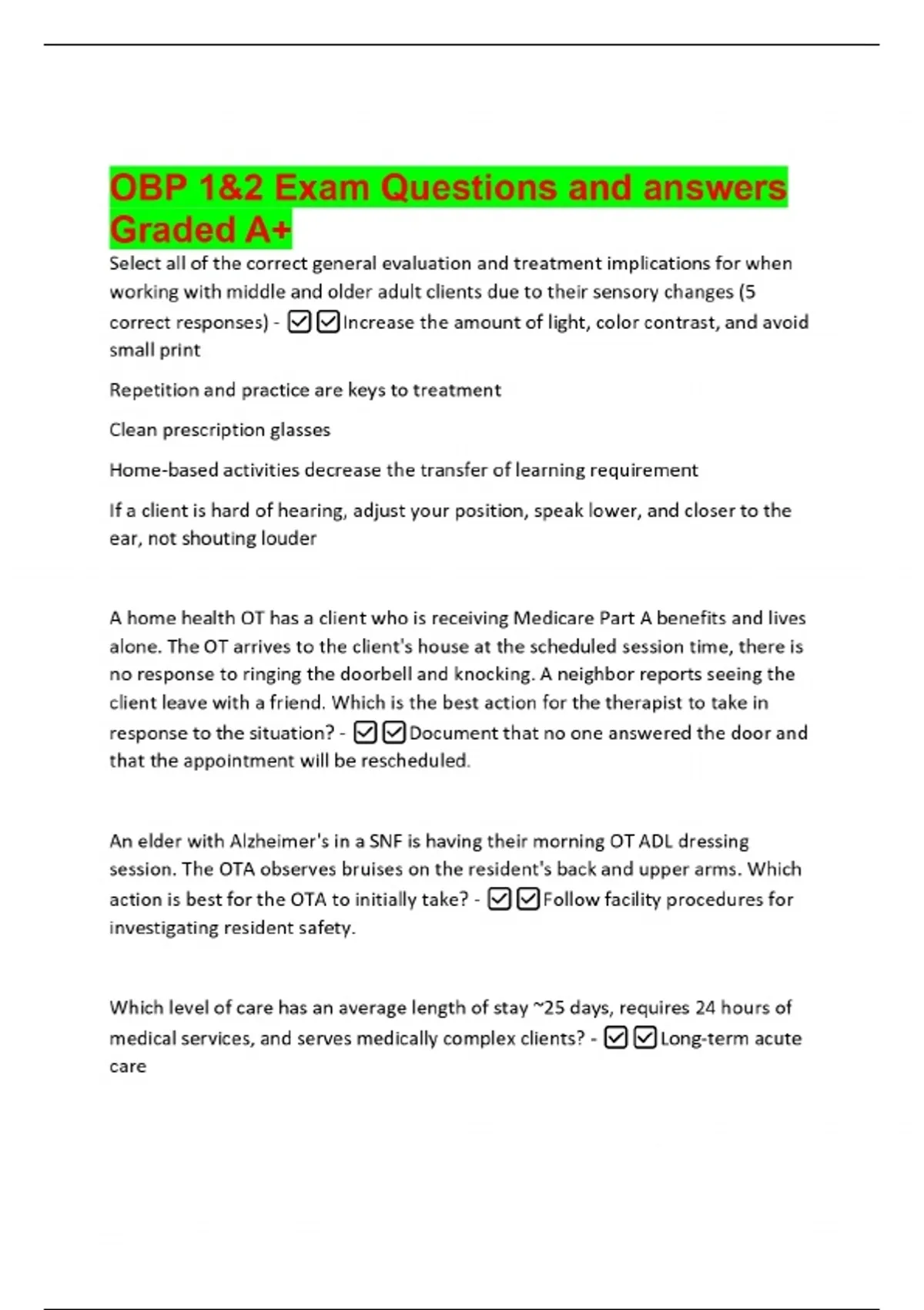 OBP Exam Questions and answers Graded A+