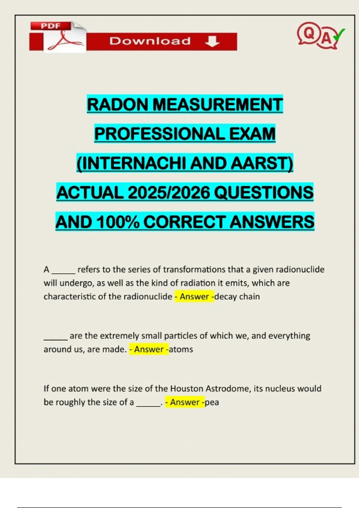 FULL EXAMS SET::: RADON MEASUREMENT PROFESSIONAL EXAMS ACTUAL 2025/2026 Q&A 100% PASS