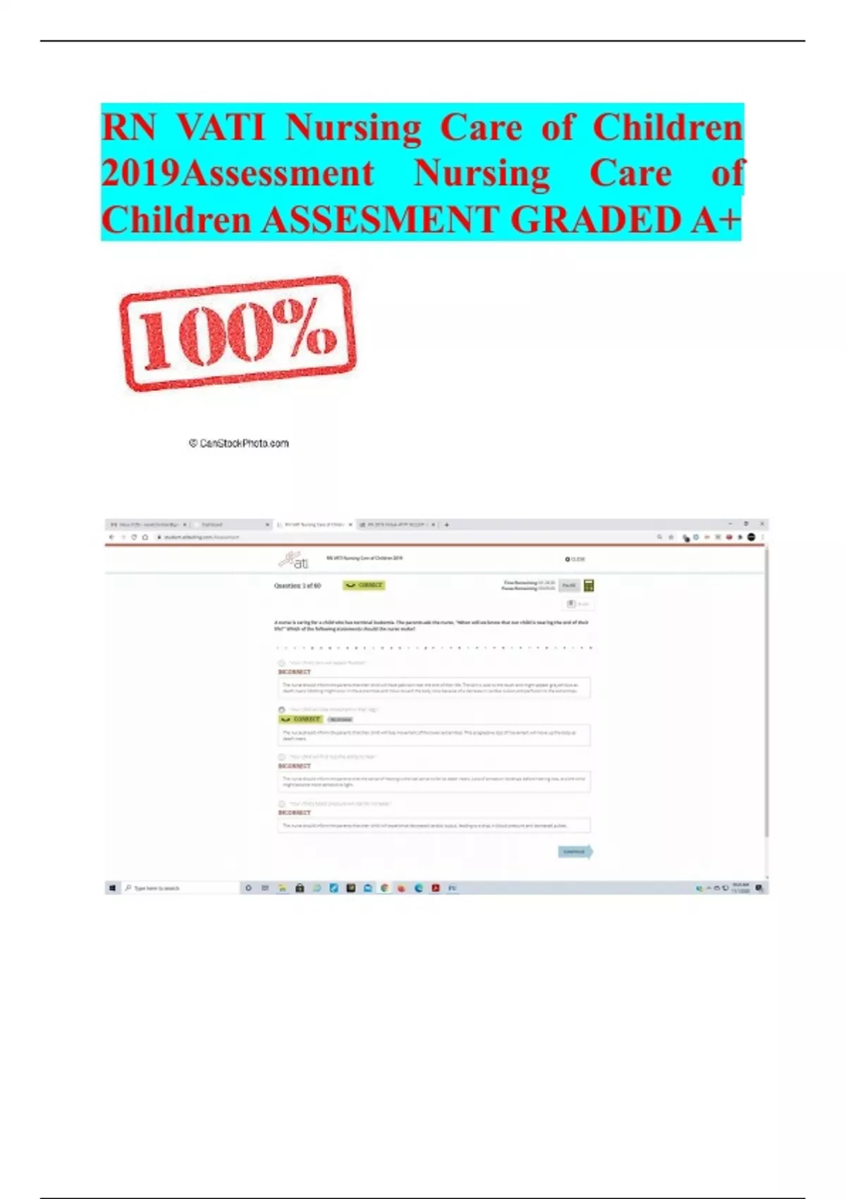 RN VATI Nursing Care of Children 2019Assessment Nursing Care of Children ASSESMENT GRADED A