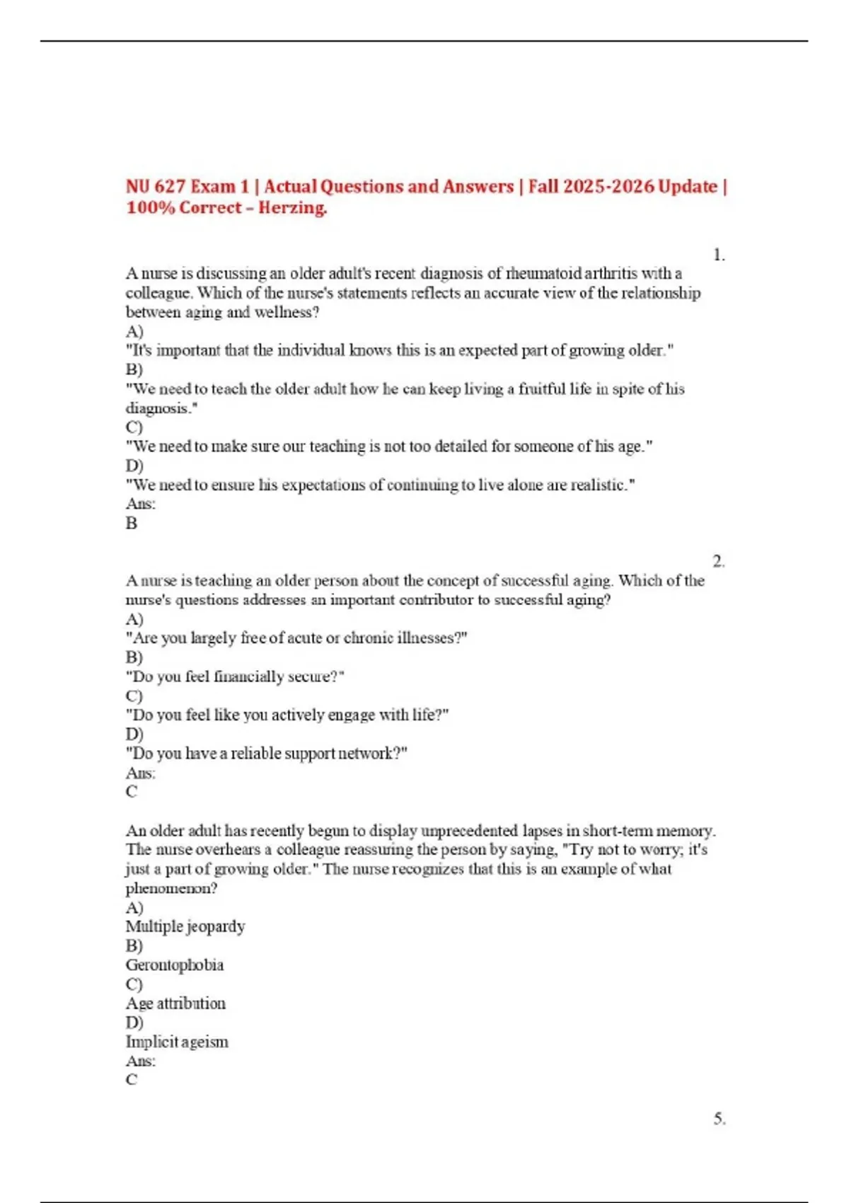 NU 627 Exam 1 | Actual Questions and Answers NU 627 Exam 2 | Actual Questions and Answers | Update NU 627 Exam 3 | Questions and Answers | Updates | 100% NU 627 Exam 4 | Questions and Answers | 2025/2026 Update | 100% Correct – Herzing.