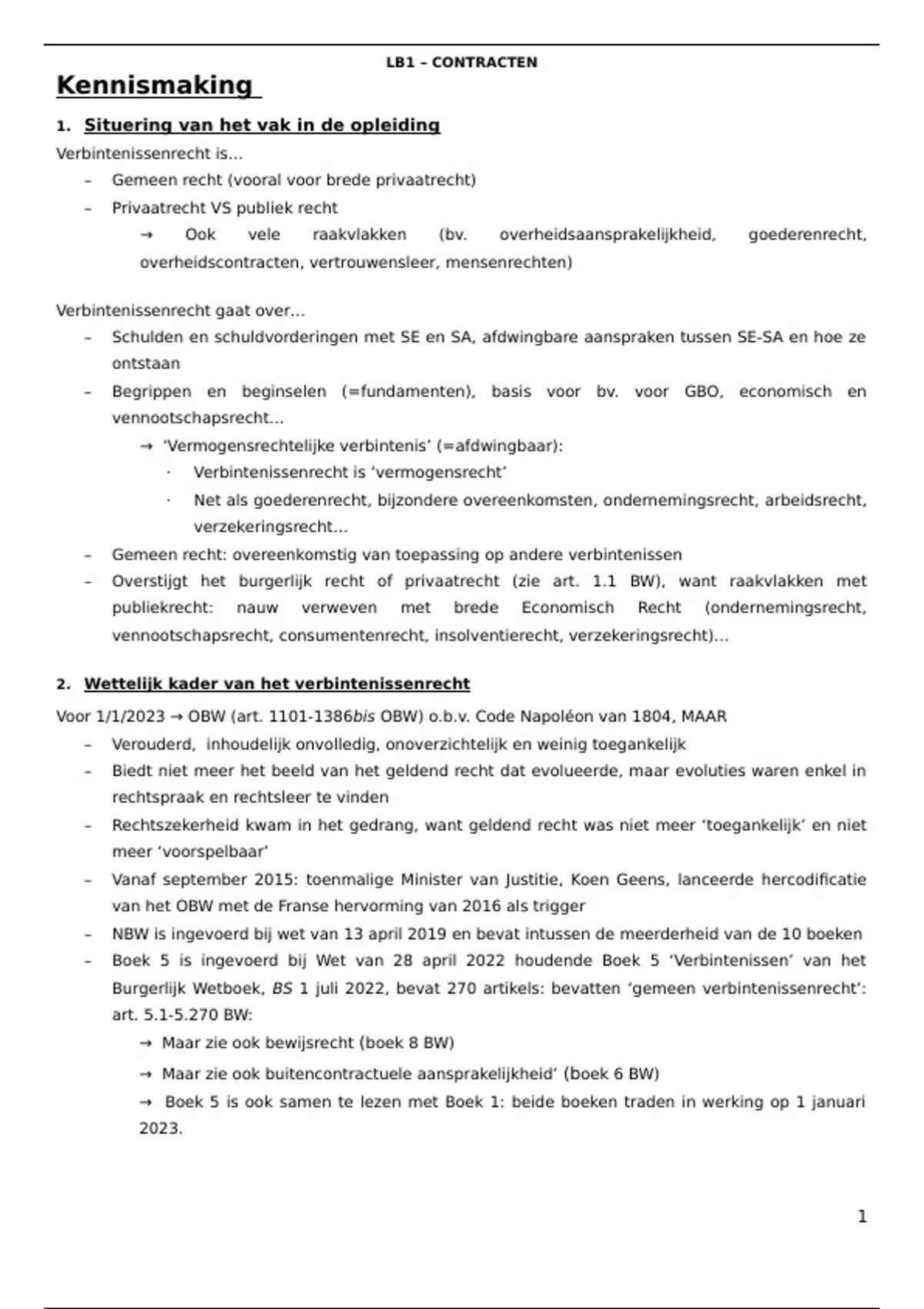 Deze bundel omvat alle powerpoints en nota's van Leerboek 1 Contracten van het vak Verbintenissenrecht. Deze bundel geleerd? Je kent Leerboek 1 Contracten!