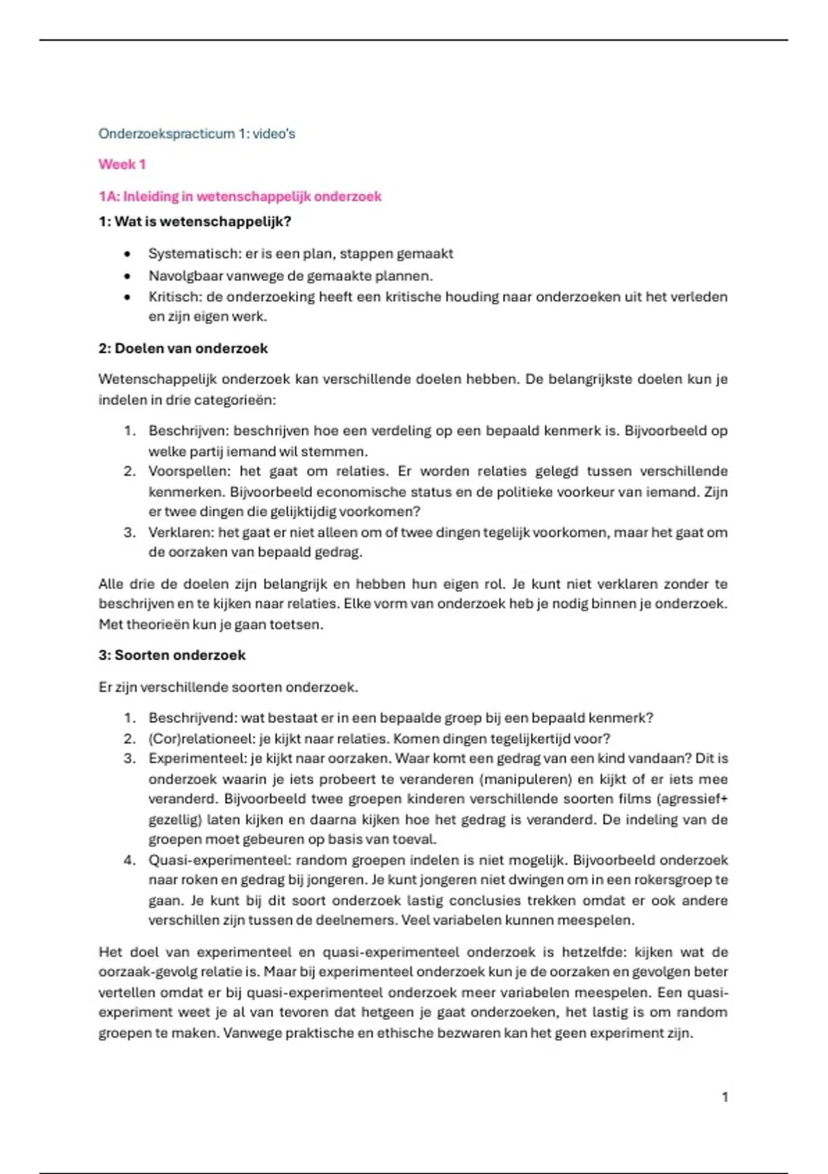 Onderzoekspracticum 1 - Samenvatting video's/colleges