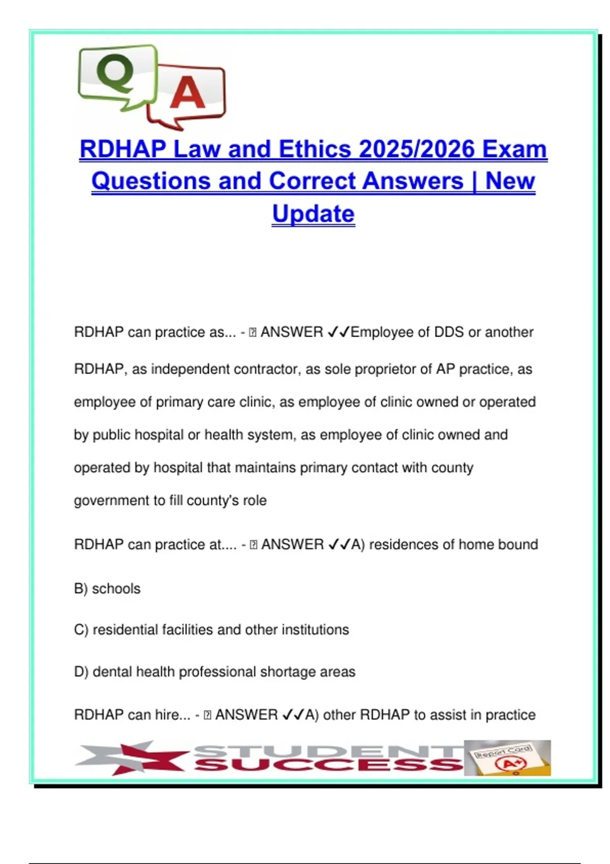 RDHAP LAW & ETHICS EXAM COMPLETE PACKAGE DEAL