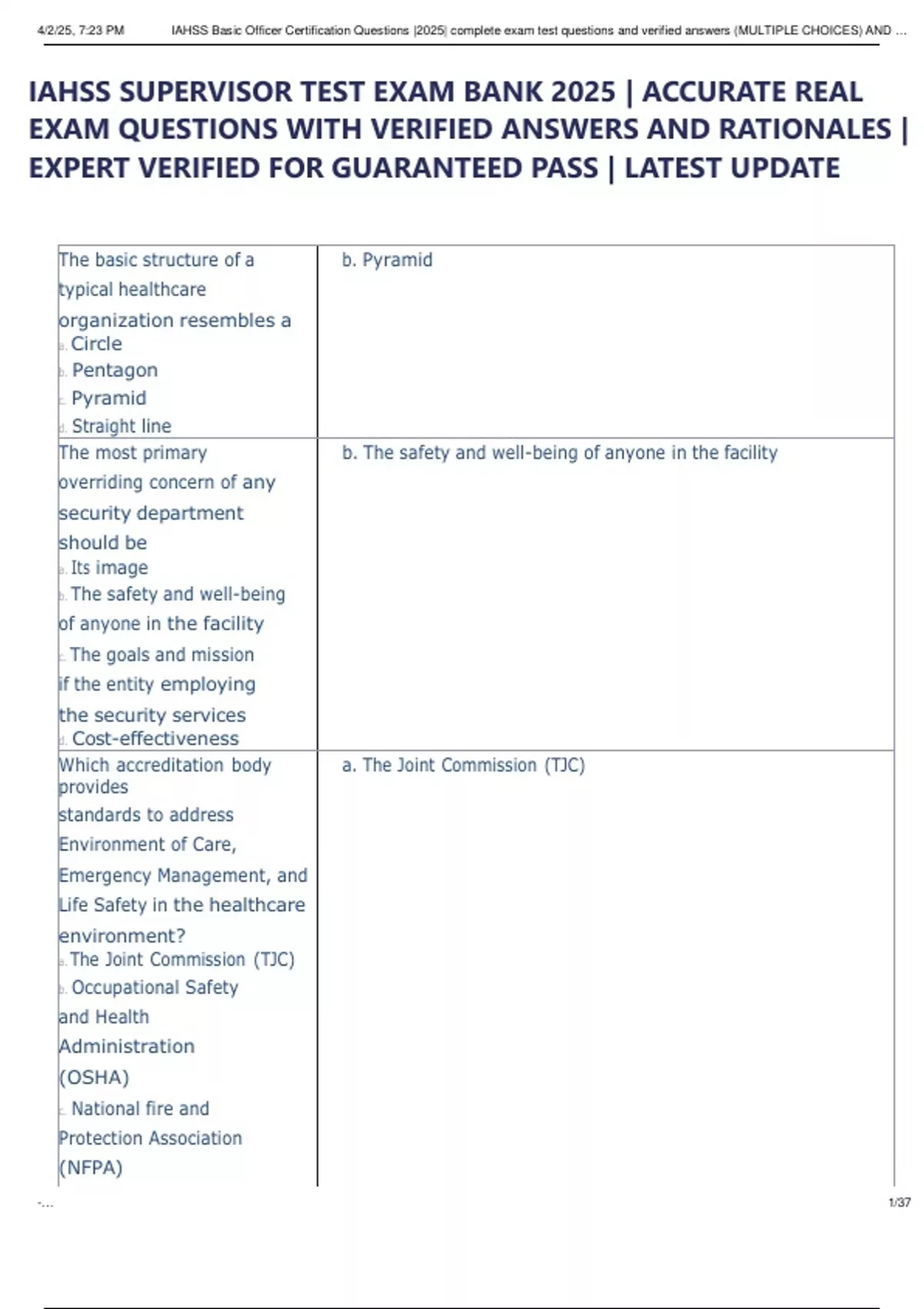 IAHSS SUPERVISOR -3RD ADDITION TEST EXAM BANK 2025 | ACCURATE REAL EXAM QUESTIONS WITH VERIFIED ANSWERS AND RATIONALES | EXPERT VERIFIED FOR GUARANTEED PASS | LATEST UPDATE IAHSS SUPERVISOR -3RD ADDITION TEST EXAM BANK 2025 | ACCURATE REAL EXAM QUESTIONS WITH VERIFIED ANSWERS AND RATIONALES | EXPERT VERIFIED FOR GUARANTEED PASS | LATEST UPDATE