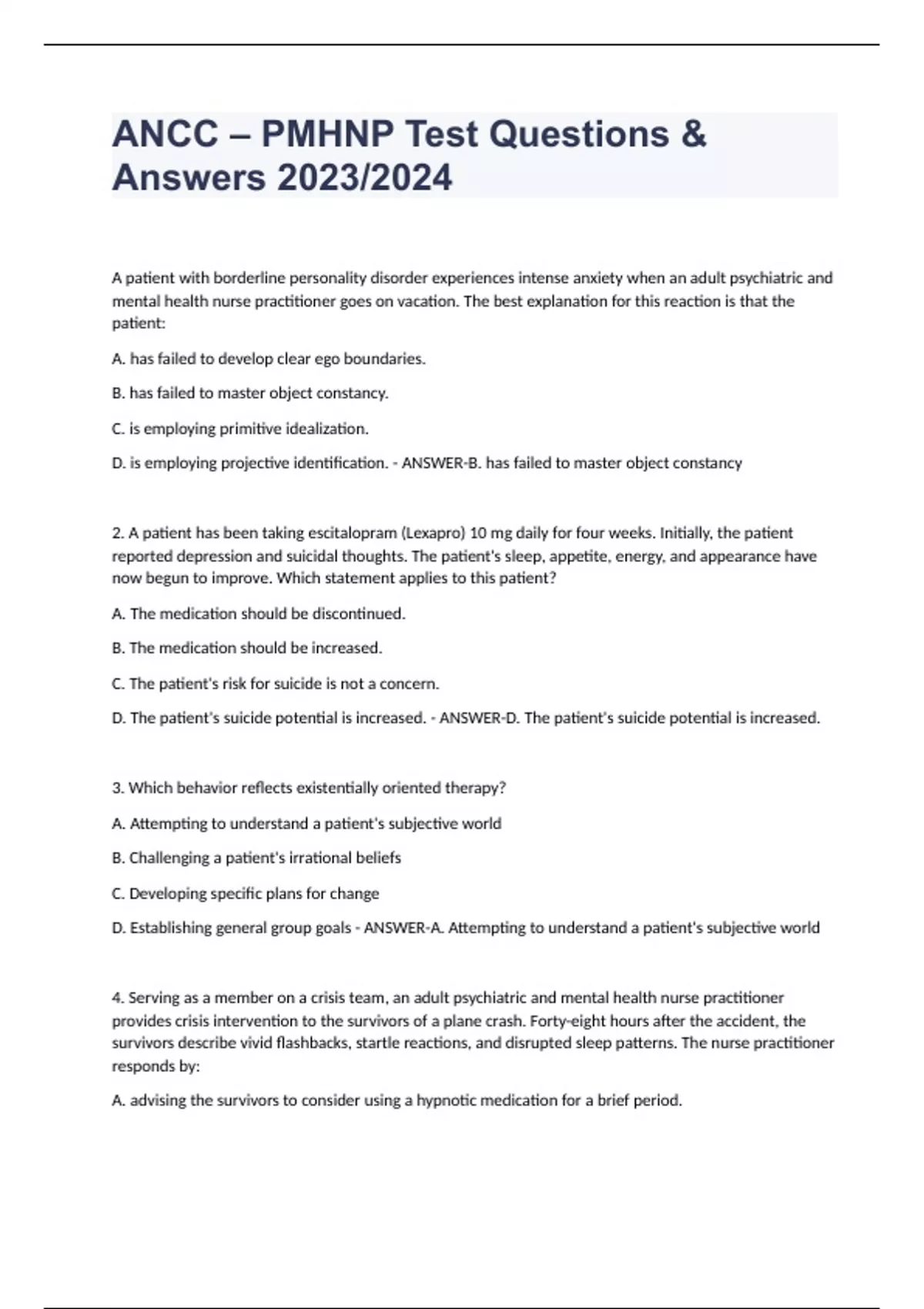 ANCC PMHNP Exam Prep Questions & Answers 2023/2024