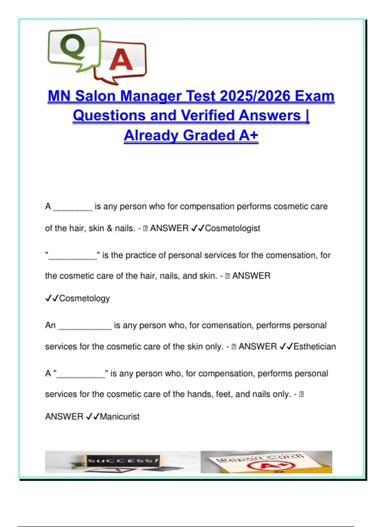 MN Salon Manager Exam 2025/2026 | 100+ Official Questions & Answers | Licensing, Sanitation, Cosmetology Law, Salon Compliance