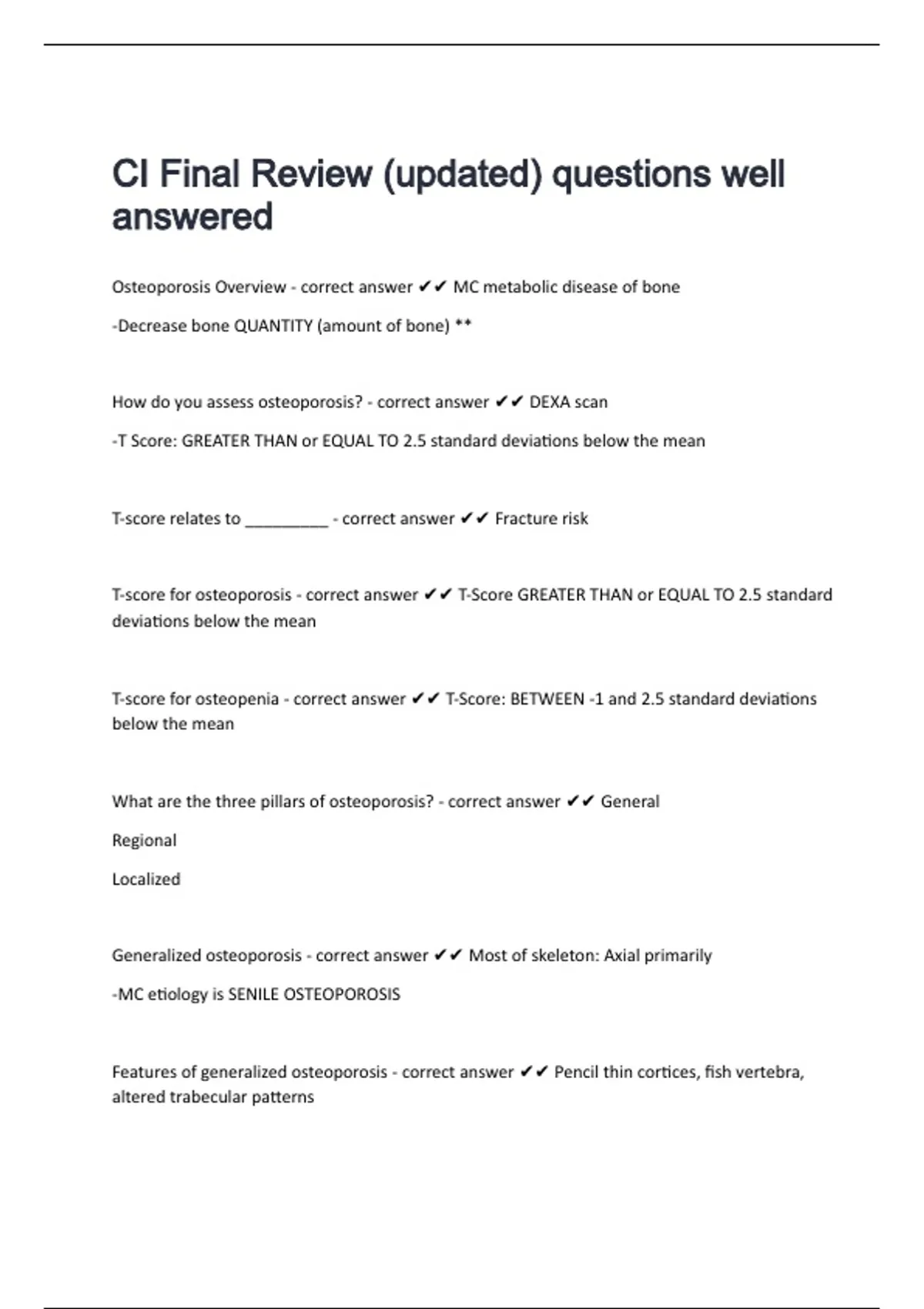 1 Exam (elaborations) CI- Exam 1 questions & answers graded A+ updated to pass 2 Exam (elaborations) CI Certification Test questions with complete solutions 3 Exam (elaborations) CI Exam 3 – Reliability questions with complete solutions 4 Exam (elaborations) CI Final Exam questions with 100% correct answers 5 Exam (elaborations) CI Exam 2 Quizz