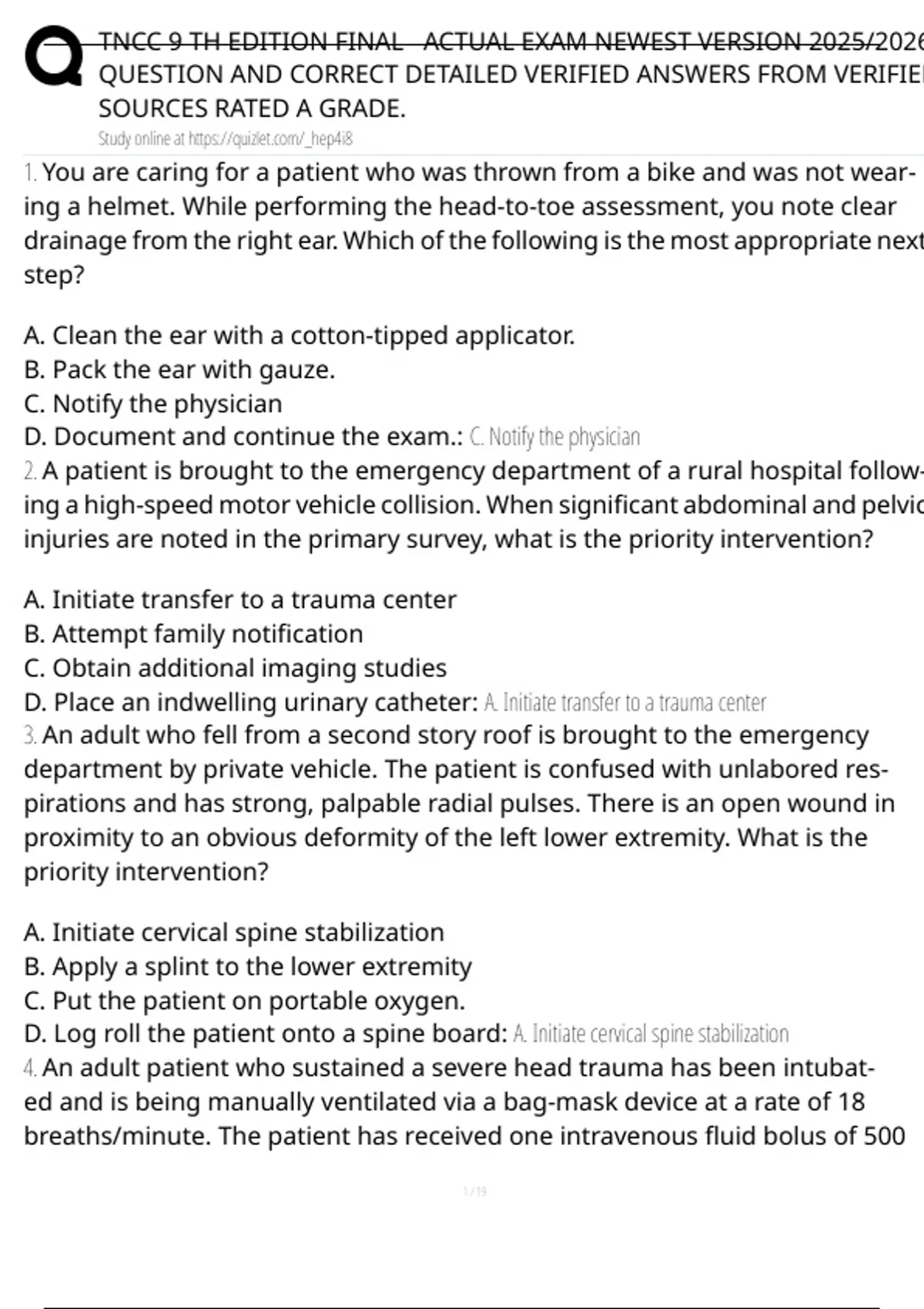 TNCC 9th Edition FINAL EXAM TEST BANK & Study Guide| 3 VERSIONS | 150+ VERIFIED Q&A | GRADED A+ | LATEST 2025