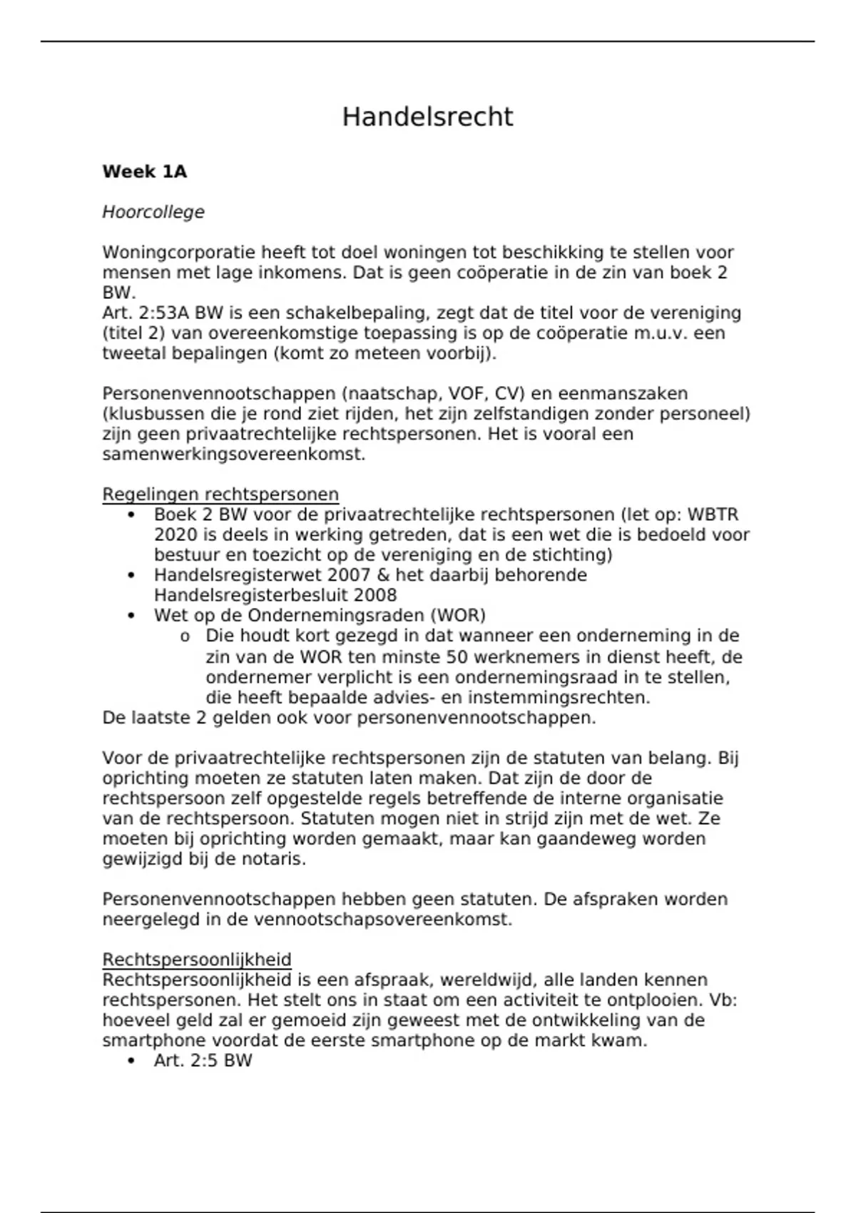 Uitgebreide hoorcollege aantekeningen Handelsrecht