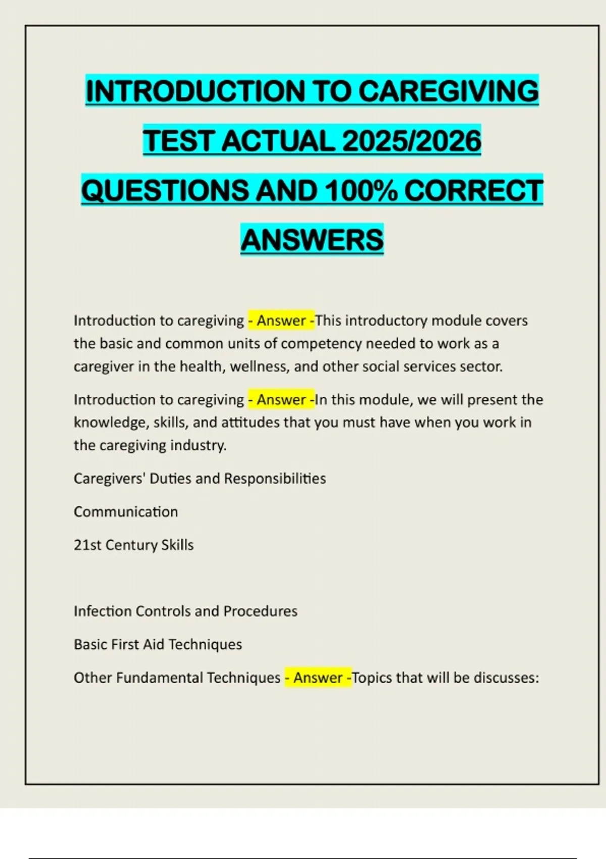 CAREGIVER TRAINING EXAM, CORE VALUES & INTRODUCTION TO CAREGIVING EXAMS QUESTIONS 100% SOLVED/ A+ GRADE GUARANTEED/2025/2026