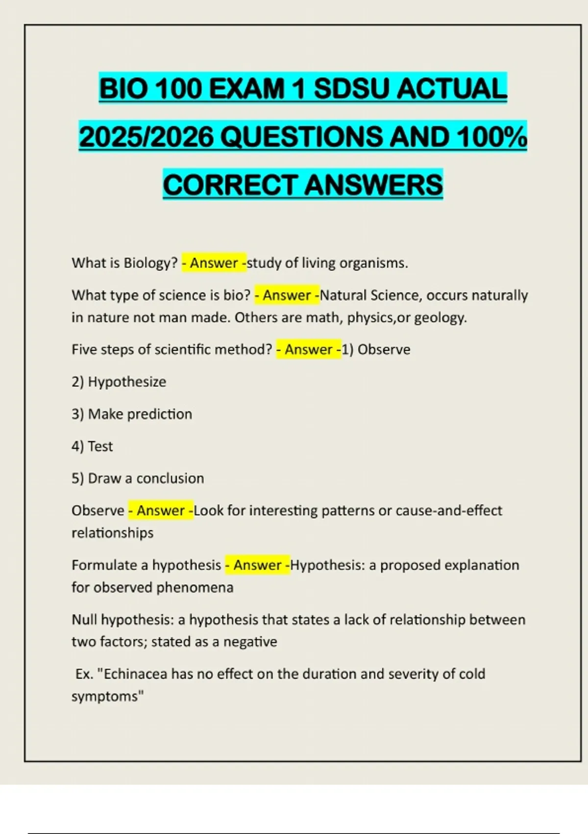 Bio 100 EXAM 1,2& 3 ACTUAL QUESTIONS AND ANSWERS 100% SOLVED/ 2025/2026