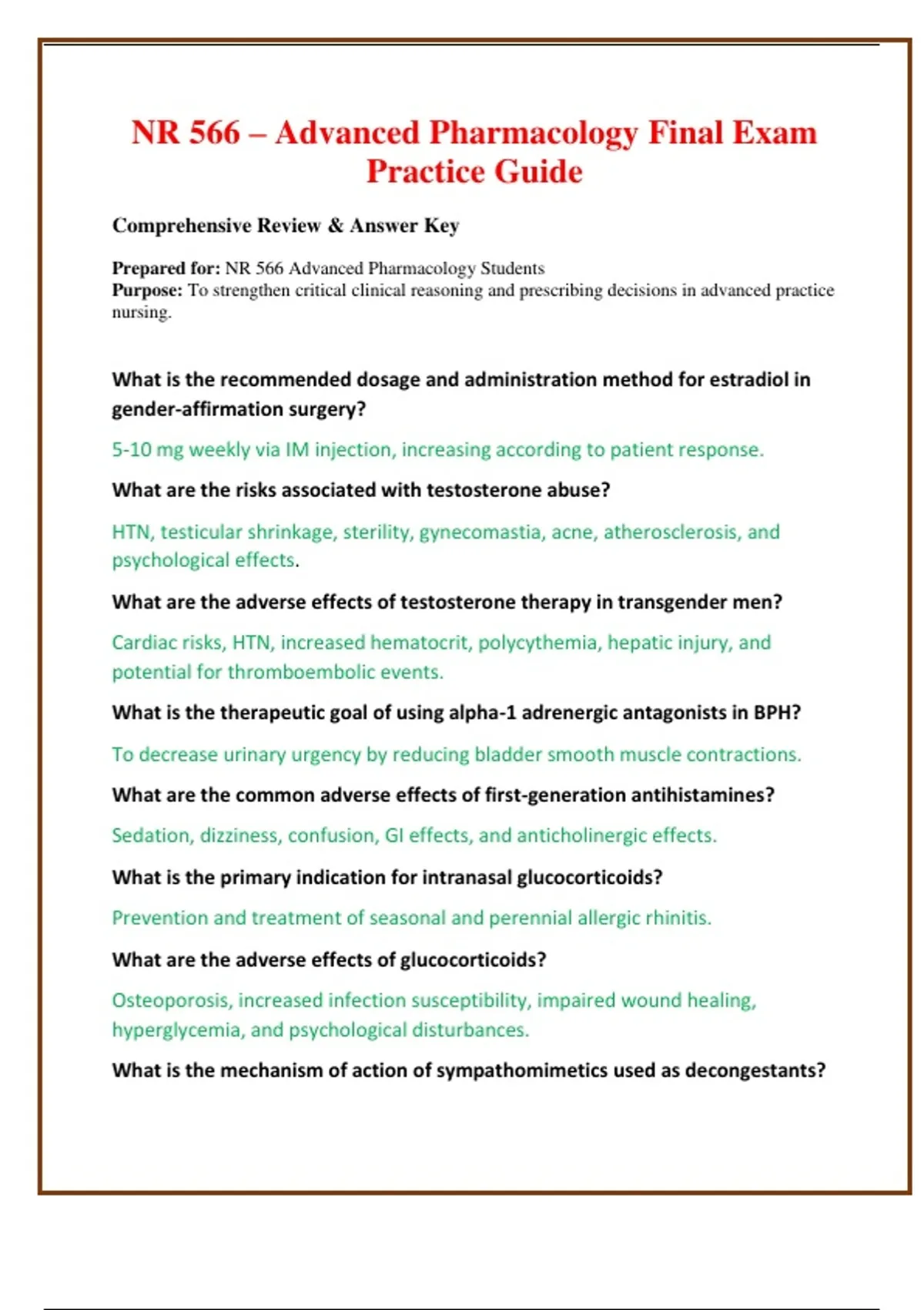 NR 566 Advanced Pharmacology Final & midterm exam 2025/2026