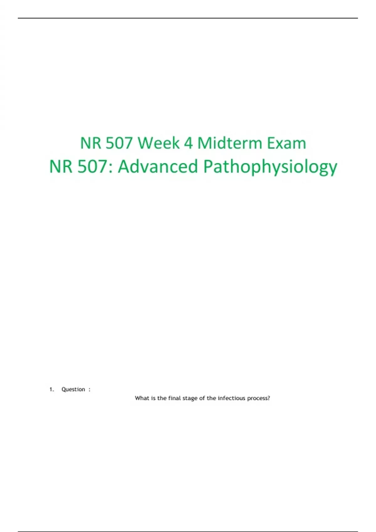 NR 507 – Advanced Pathophysiology | Chamberlain University | Complete Course Package (Quizzes, Midterm & Final Exam with Elaborated Answers)