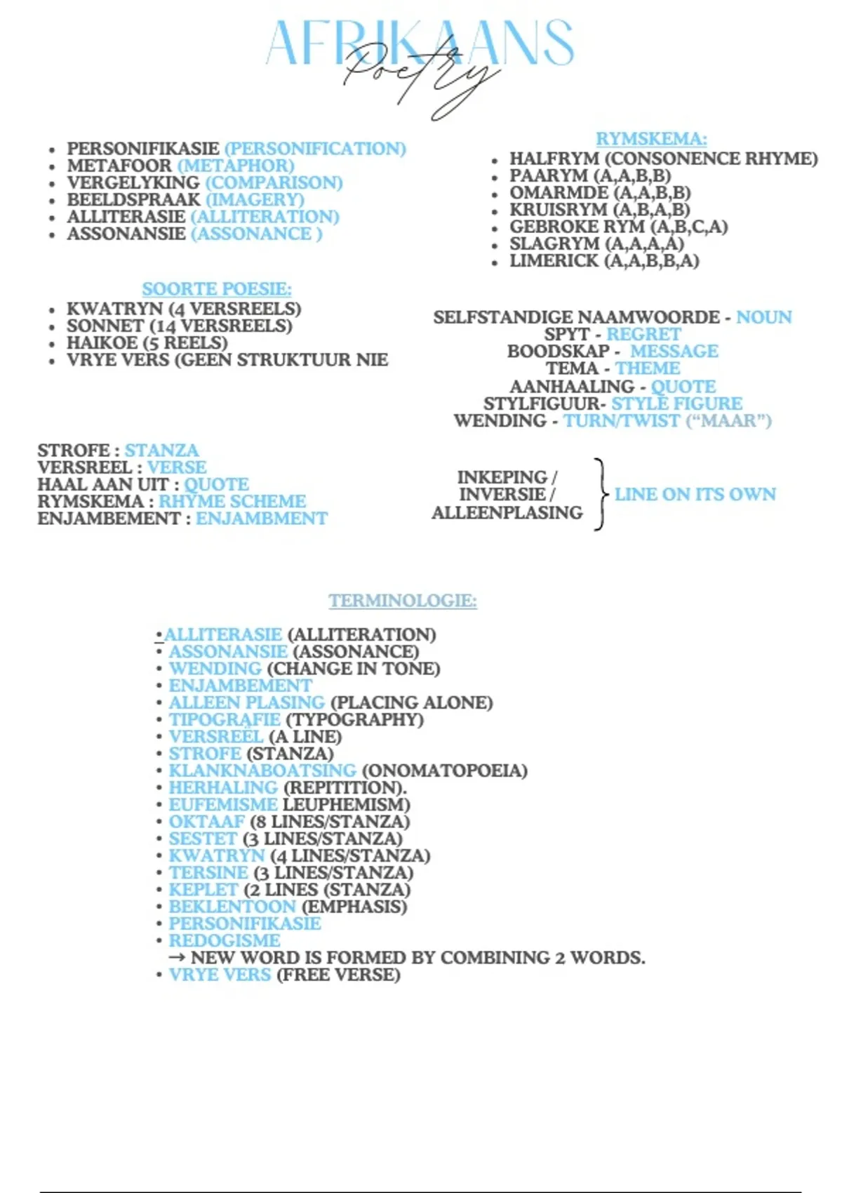 This bundle includes both the Afrikaans Language Pack and the Afrikaans Poetry Pack, giving you clear, organised notes for every section of the syllabus. What’s Inside: notes and practice on summaries, visuals, language, communication, and poetry for all the prescribed poetry in the exam.