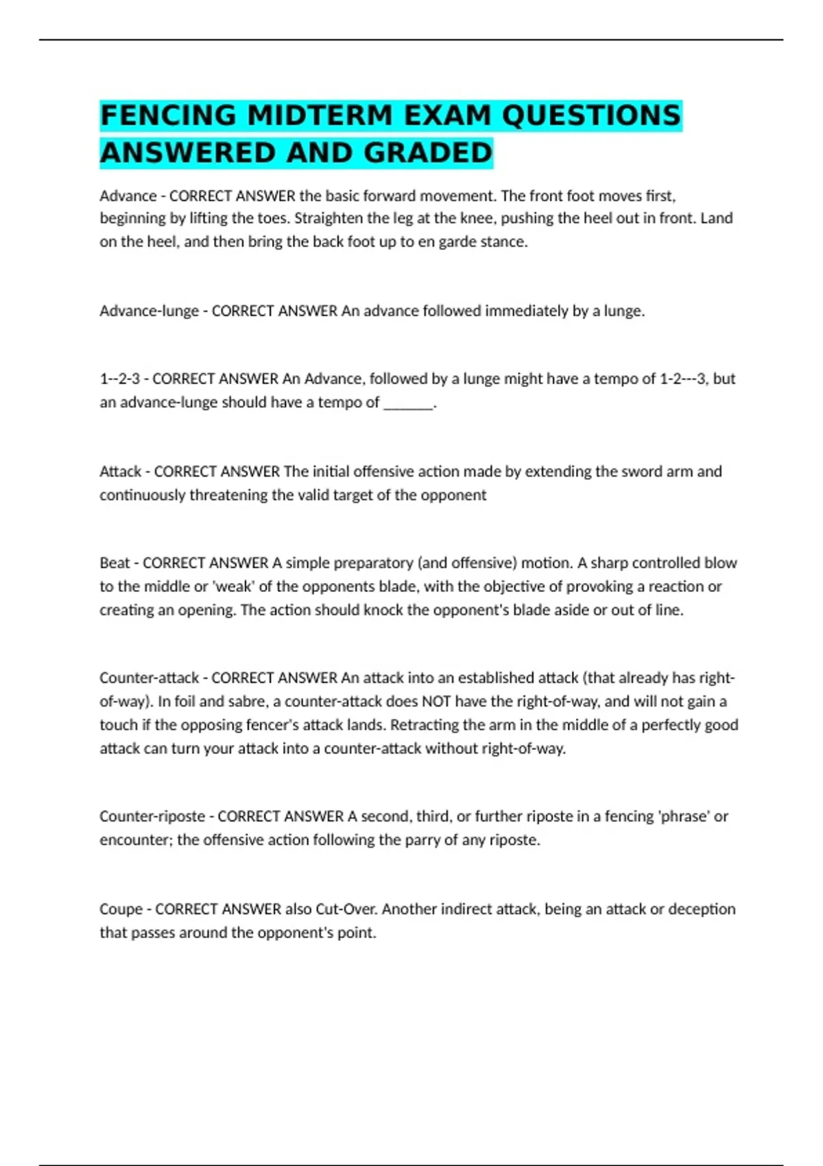 ANSWERED||FENCING REFEREE GENERAL RULE TEST,FENCING REFEREEING EXAM QUESTIONS AND COMPLETE SOLUTIONS,FENCING MIDTERM EXAM QUESTIONS ANSWERED AND GRADED,FENCING- REF TEST MIDTERM QUESTIONS FULLY ANSWERED 2026/27,USFA FENCING REFEREE TEST QUESTIONS FULLY SOLVED