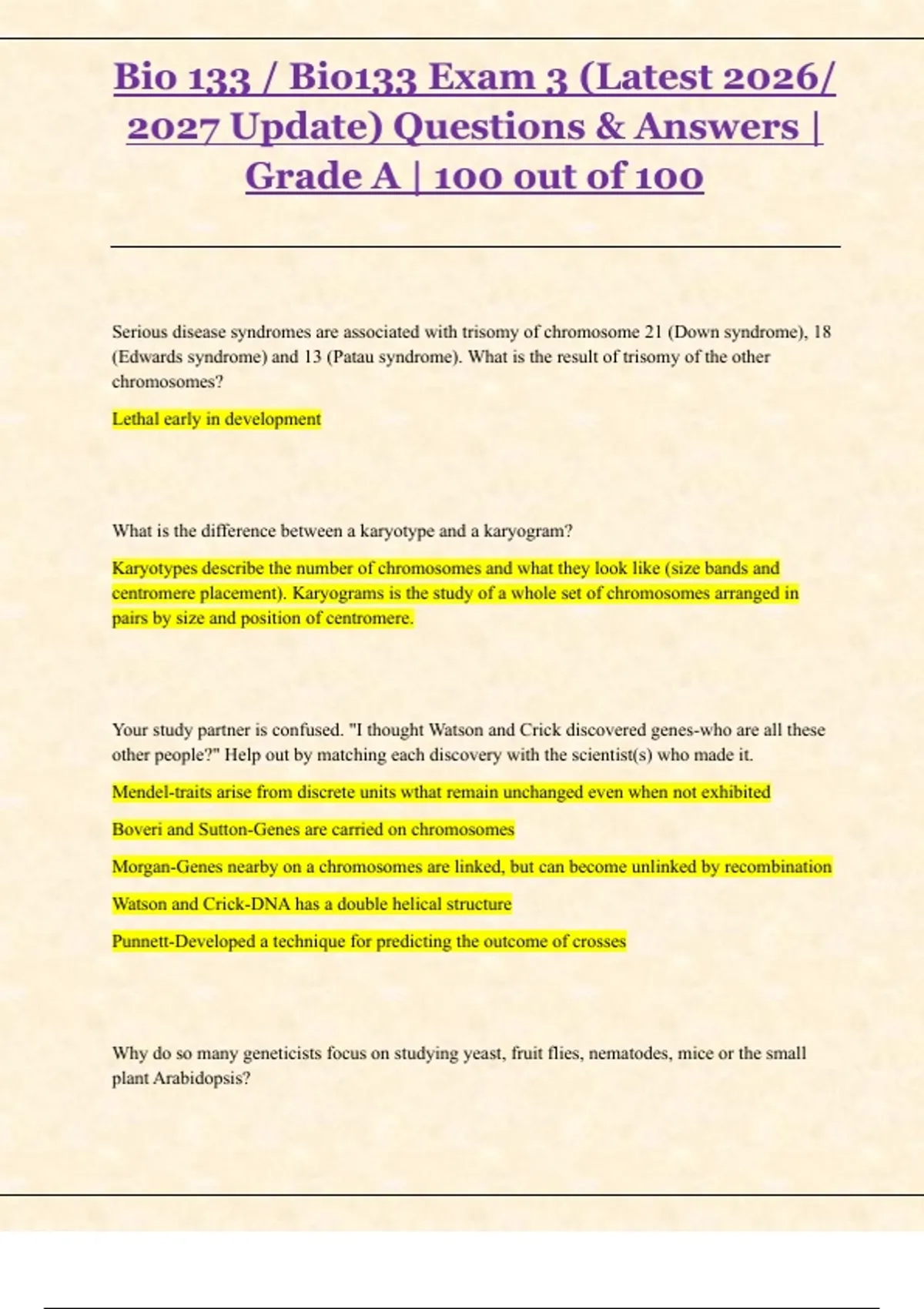 BIO 133 Exams 2 & 3 (Latest 2026/2027 Study Bundle) | Verified Questions & Answers | 100% Correct | Grade A | Complete Biology Exam Pack