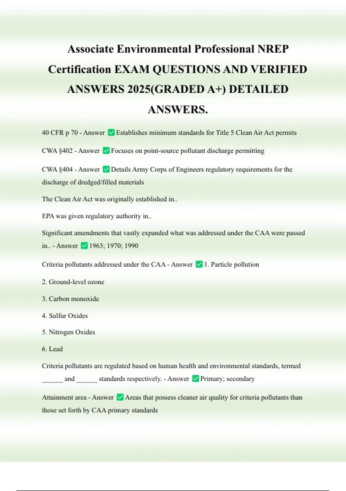Master the Associate Environmental Professional (AEP) – NREP Certification Exam with this complete study package. Includes detailed notes, key concepts, and practice questions on environmental law, risk assessment, pollution control, and sustainability—everything you need to pass with confidence.