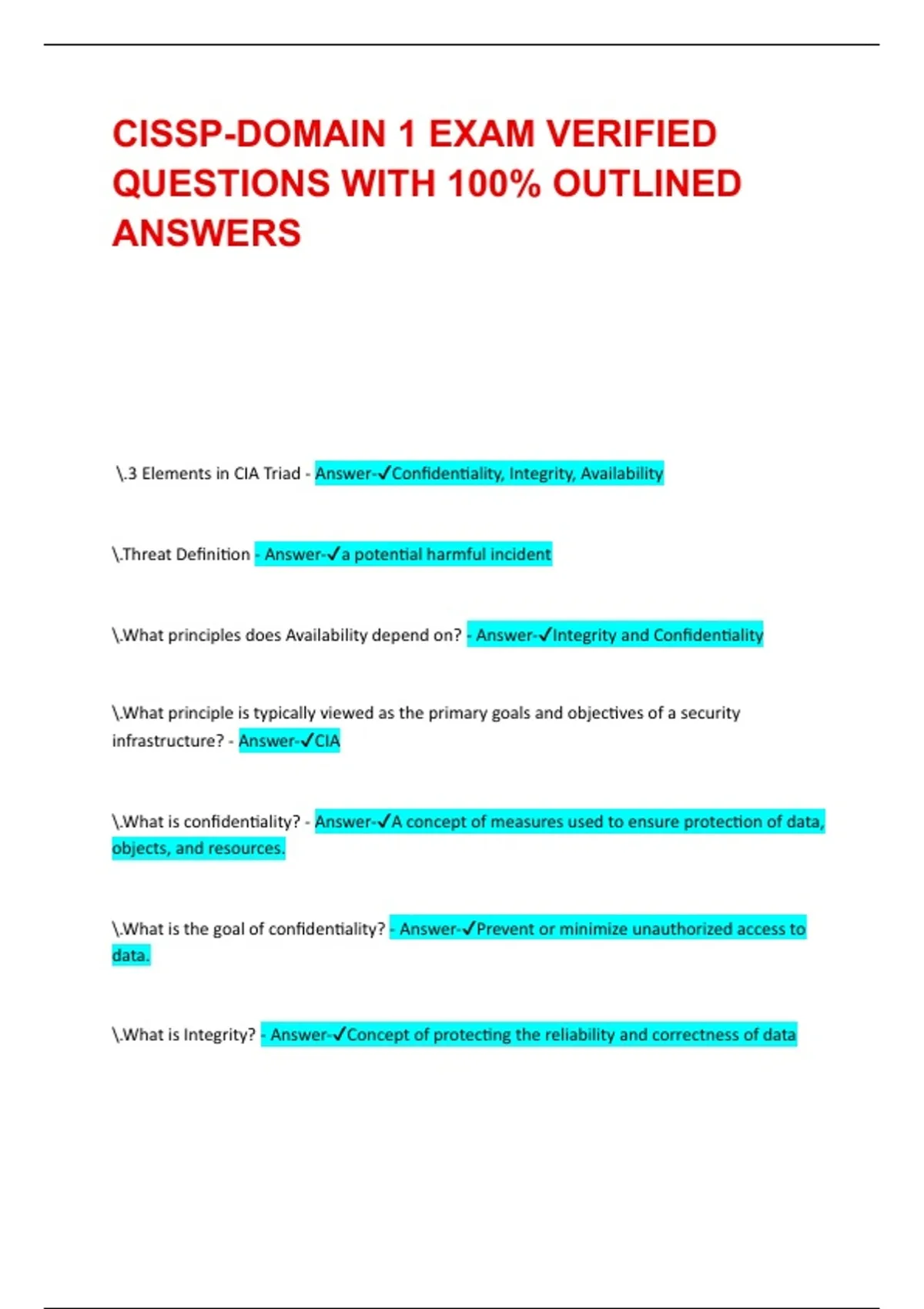 CISSP-DOMAIN 1 EXAM VERIFIED QUESTIONS WITH 100% OUTLINED ANSWERS 2 Exam (elaborations) CISSP-DOMAN 1 EXAM QUESTIONS WITH 100% VERIFIED ANSWERS 3 Exam (elaborations) CISSP- Domain 2: Asset Security Exam Questions And Answers || 100%Pass 4 Exam (elaborations) CISSP- Domain 2: Asset Security Exam Questions And 100% Correct Answers 5 Exam (elabora