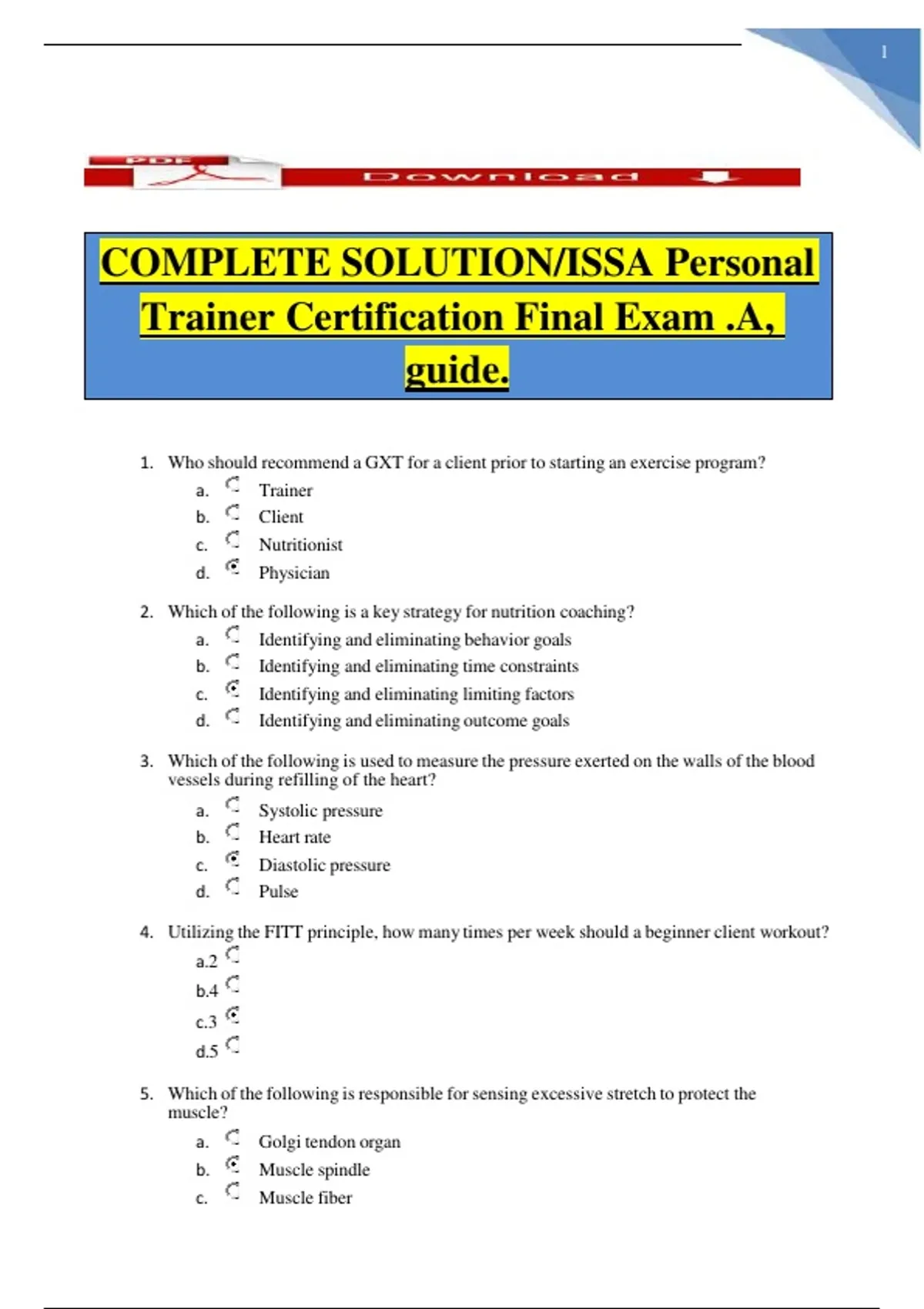 ISSA EXAM TESTS BUNDLED ISSA Final Exam ISSA TRAINER EXAM Questions and Answers (2025 / 2026) (Verified Answers)