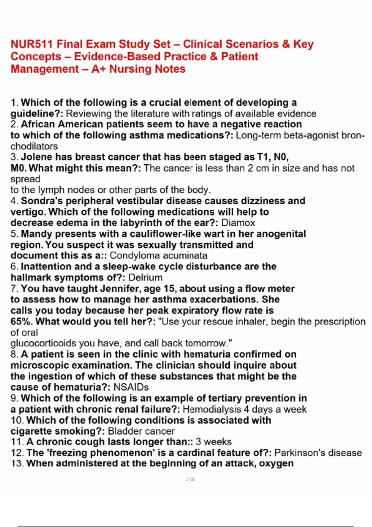 NUR 511 & NR 511 Final + Midterm Exam Study Bundle 2025 – Heart Failure, Cardiac, Pulmonary, GU, Musculoskeletal, Dermatology & More (Verified Answers & A+ Notes)NUR 511 & NR 511 Final + Midterm Exam Study Bundle 2025 – Heart Failure, Cardiac, Pulmonary, GU, Musculoskeletal, Dermatology & More (Verified Answers & A+ Notes)NUR 511 & NR 511 Final + M