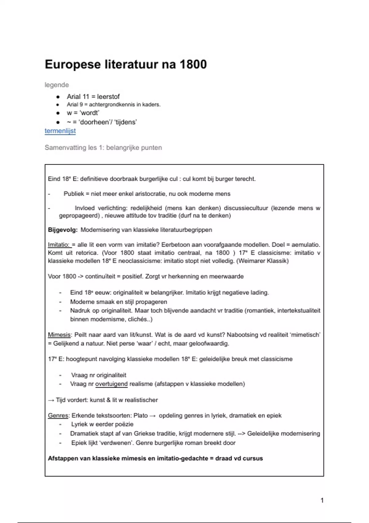 Europese literatuur na 1800: volledige samenvatting (namen en termen+ context uit colleges)