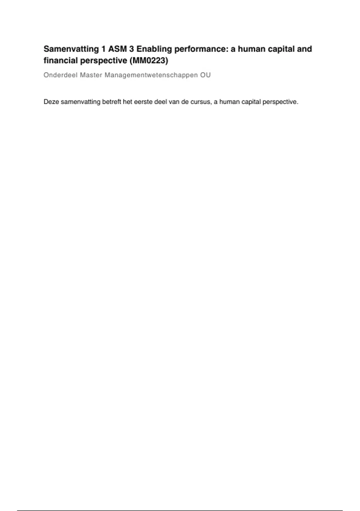 Samenvatting ASM 3 - Enabling performance: a human capital and financial perspective
