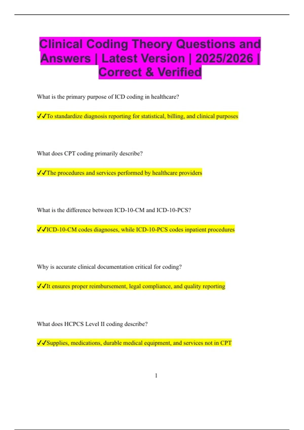 Medical Coding Bundled Exams Questions and Answers Multiple Versions Latest Updates (2025/2026) (Complete, Accurate, and Verified)