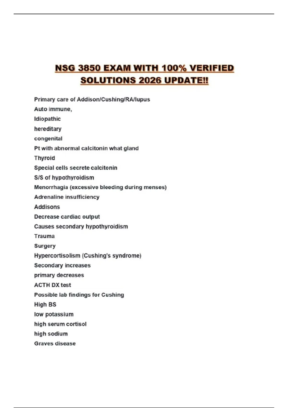 NSG 3850 EXAM WITH 100% VERIFIED SOLUTIONS 2026 UPDATE!!
