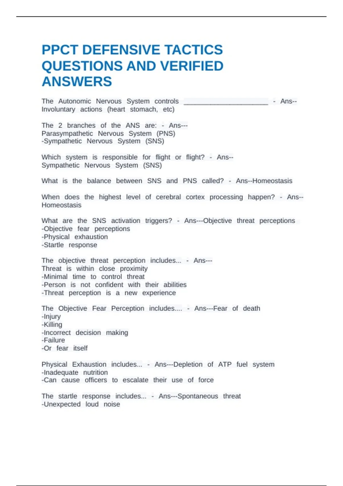 PPCT DEFENSIVE TACTICS QUESTIONS AND VERIFIED ANSWERS