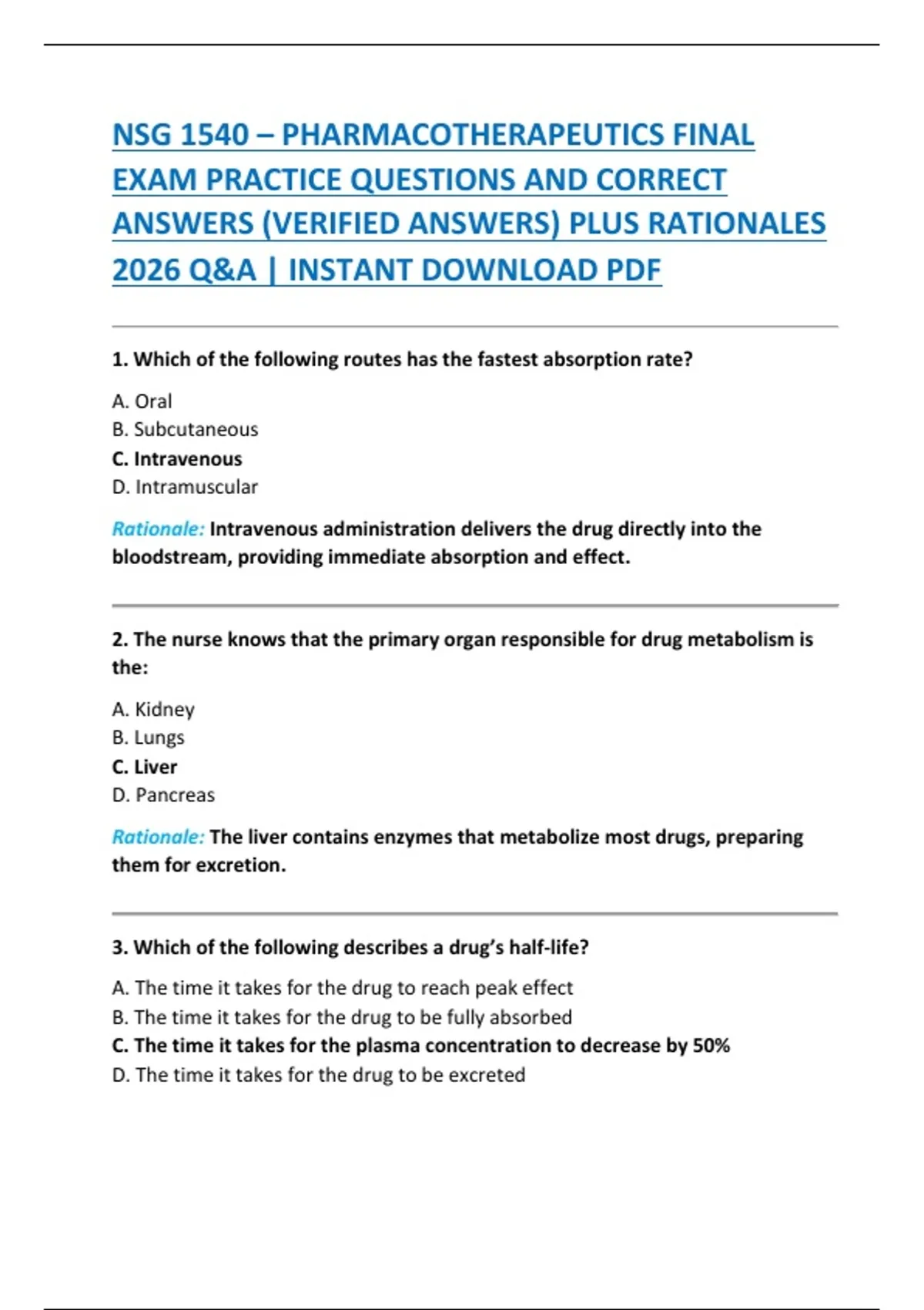 NSG 1540 – PHARMACOTHERAPEUTICS MIDTERM AND FINAL EXAM PRACTICE QUESTIONS AND CORRECT ANSWERS (VERIFIED ANSWERS) PLUS RATIONALES 2026 Q&A | INSTANT DOWNLOAD PDF