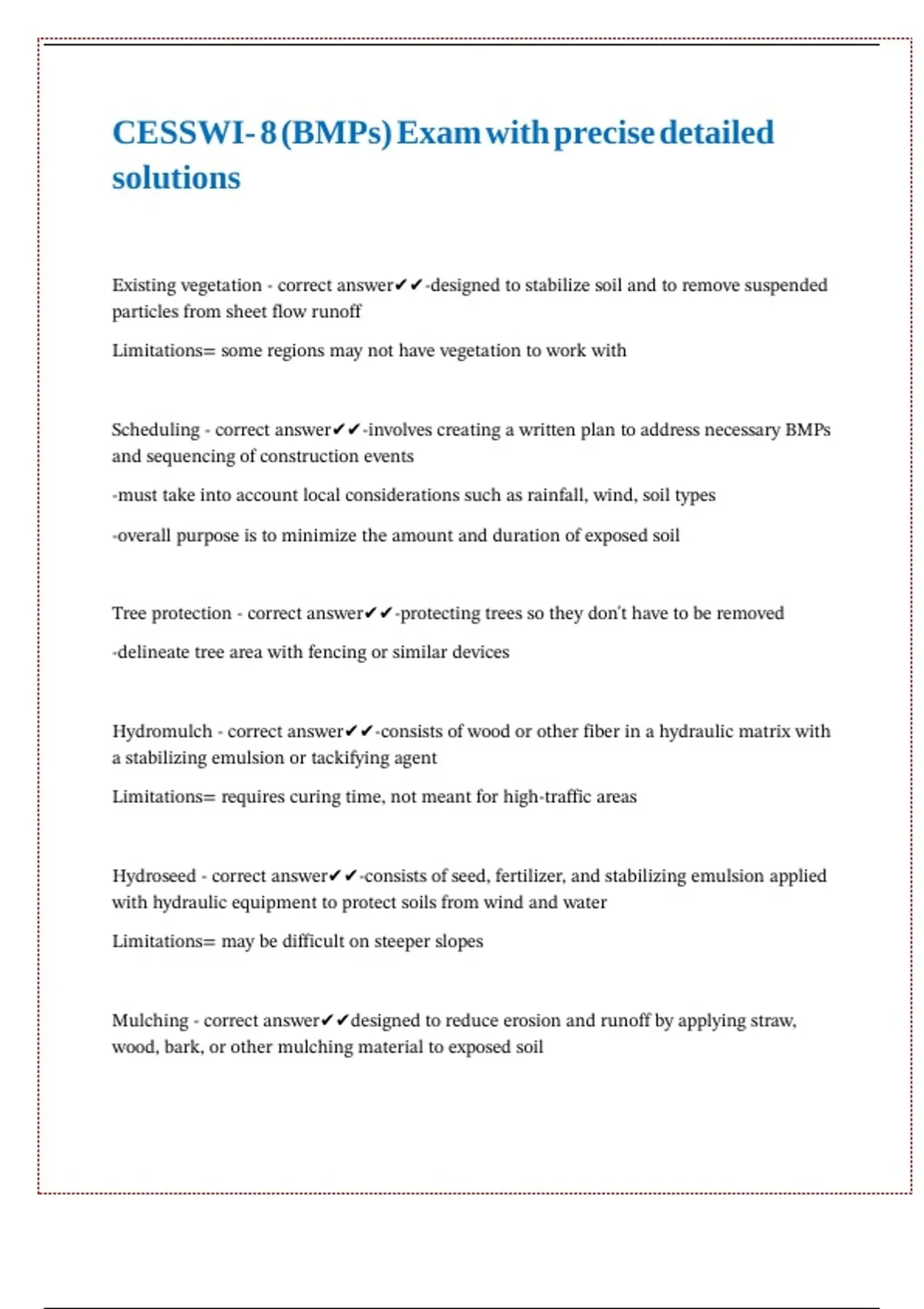 CESSWI- 8 (BMPs) Exam with precise detailed solutions