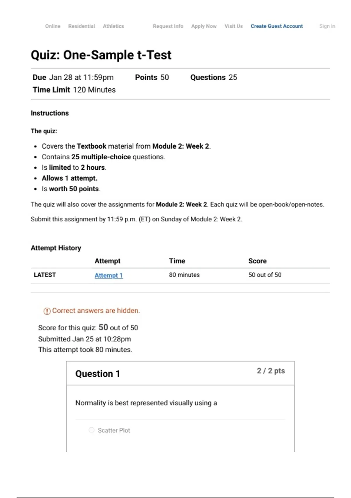 EDUC 812 Quiz: One-Sample t-Test | Questions and Answers | Fall 2025/26 Update | 100% Correct.