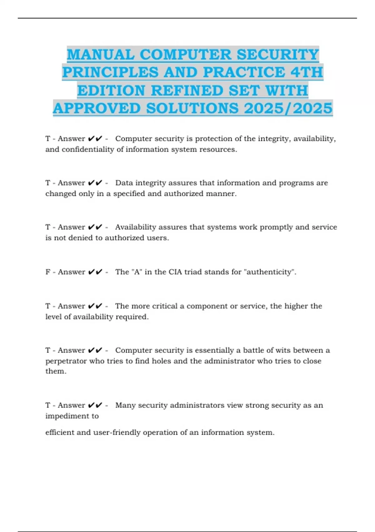 Computer Skills Placement Test With Approved Solutions | Graded A+ what does LAN refer to? - Correct Answer-a computer network you are allowed to make a copy of a copyright protected computer program: - Correct Answer-when making a backup copy how many kilobytes are equilvalent to one megabyte? - Correct Answer-about 1,000 what parameter is use