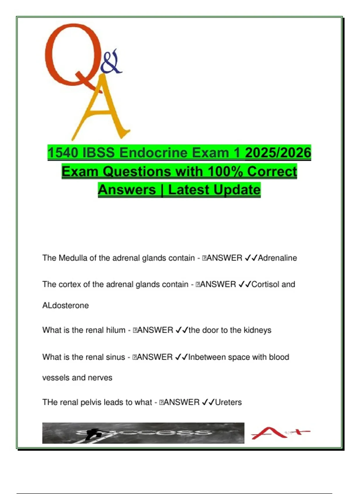 1540 IBSS Endocrine Exam 1 | 300+ Questions | Renal, Hormones, Physiology | 2025