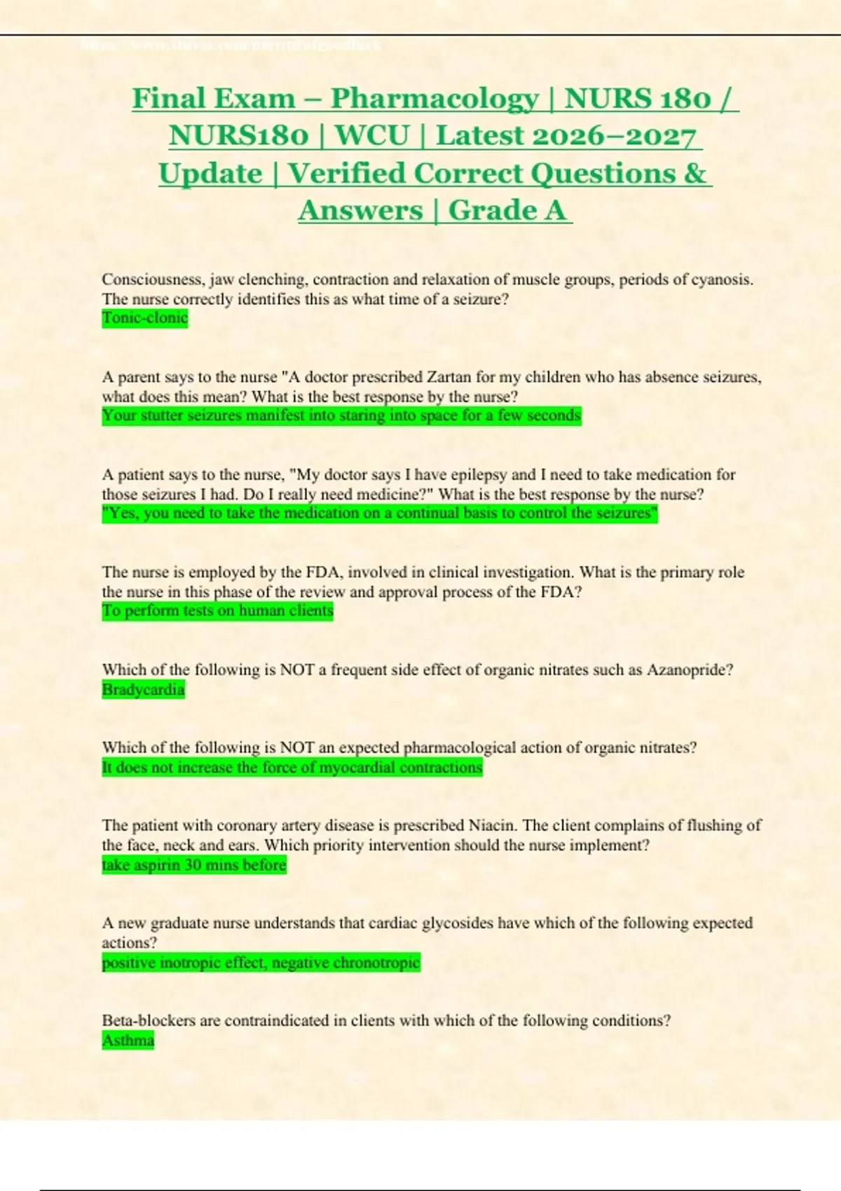 NURS 180 Pharmacology – Midterm + Final | WCU Latest 2026/2027 Study Bundle | Verified Test Bank & Solutions | Grade A Guaranteed