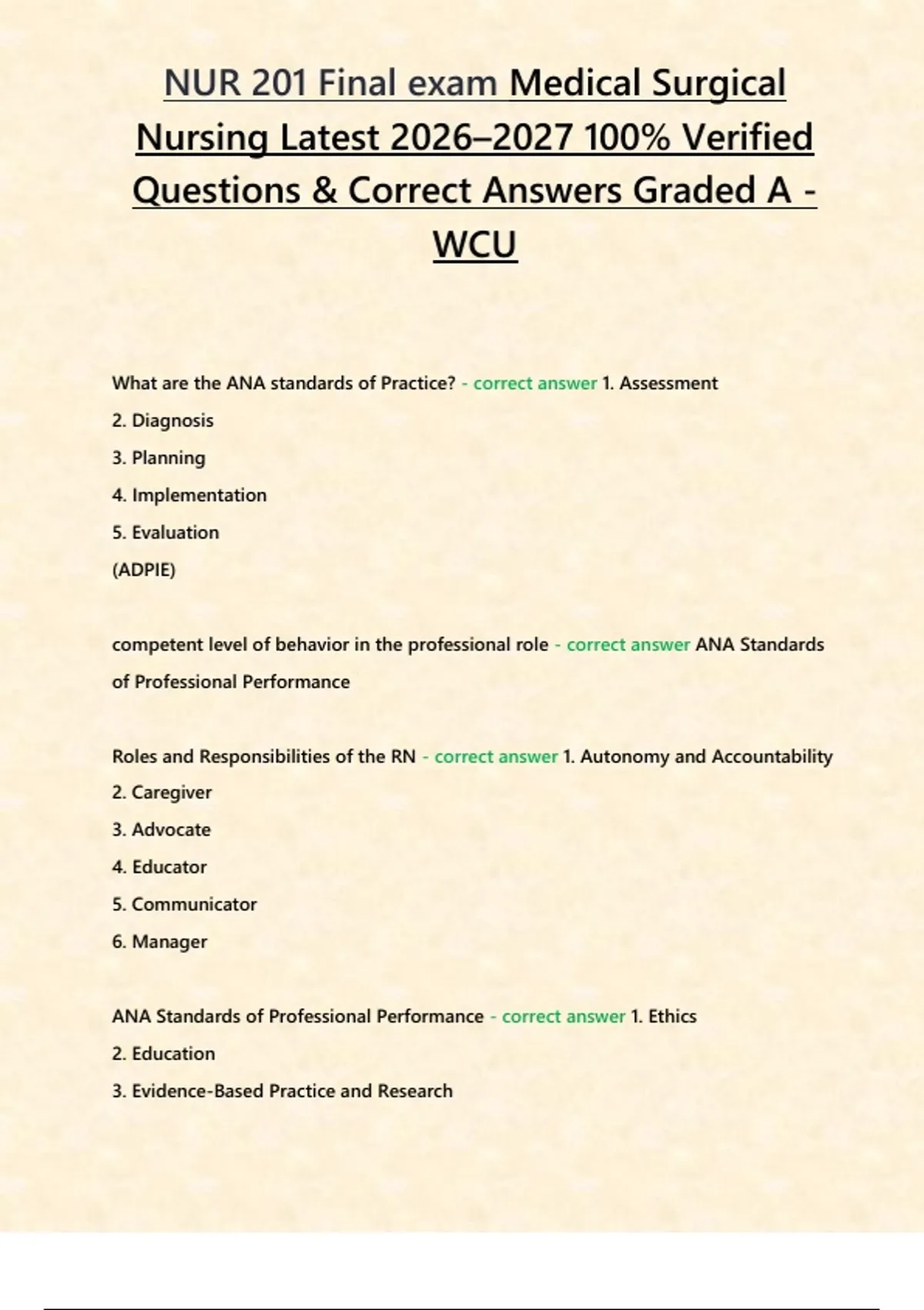 NUR 201 Final exam Medical Surgical Nursing Latest 2026–2027 study bundle 100% Verified Questions & Correct Answers Graded A - WCU