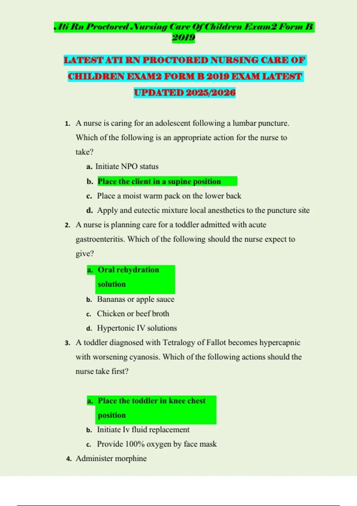 ATI RN PROCTORED NURSING CARE OF CHILDREN BUNDLE EXAM FORM B EXAM LATEST UPDATED 2026 (DIFFERNT VERSIONS)
