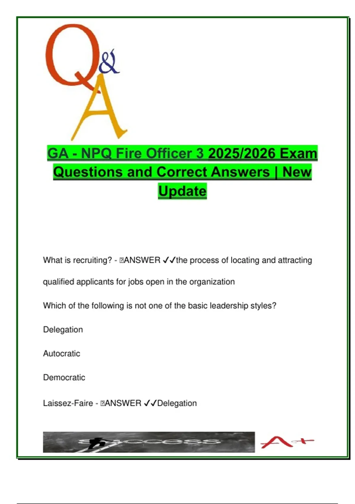 GA – NPQ Fire Officer 3 (FO3) | 2025/2026 | 100+ Solved Exam Questions on Leadership, ICS, Safety, Budgeting