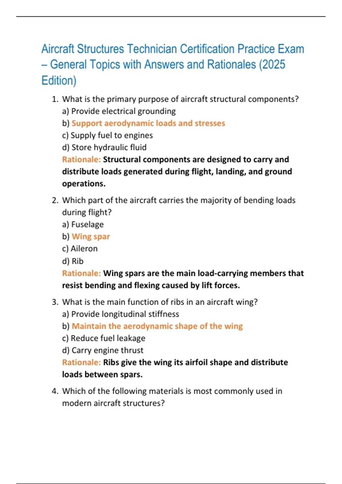 Aircraft Structures Technician Certification Practice Exam – General Topics with Answers and Rationales (2025 Edition) Aircraft Electrical Systems Technician Exam – Full Practice Test (100 Questions Aircraft Fuel Systems Maintenance Exam – 100 Questions, Answers & Rationales Aircraft Sheet Metal Technician Certification – Full 100-Question Practi